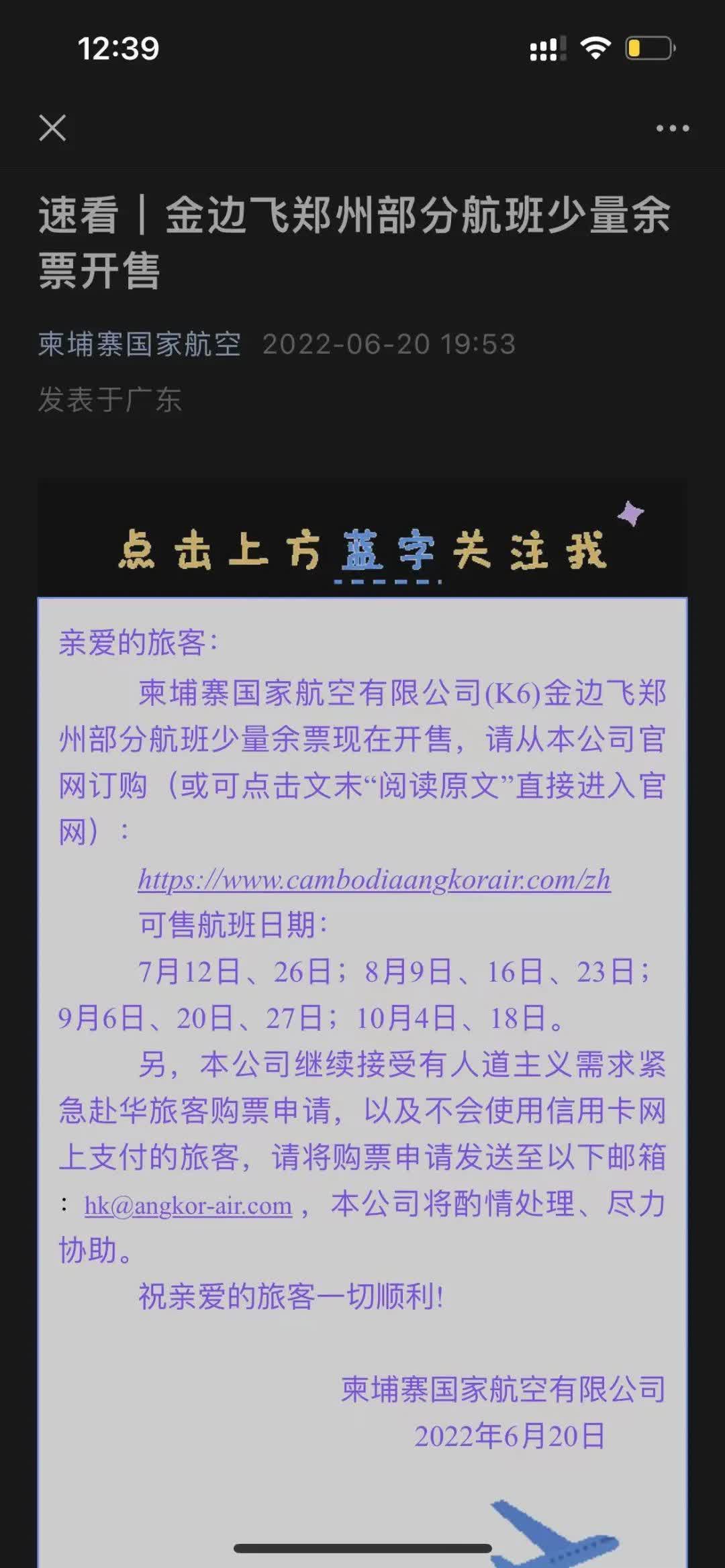 #回国航班# #金# #社会# #柬埔寨国家航空# #金边# #生活出行# #郑州#