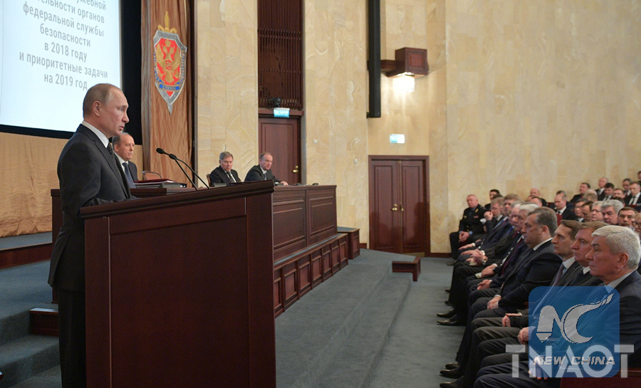 លោកពូទីន បានកោតសរសើរដល់កងកម្លាំង FSB រុស្ស៊ី ខណៈការពារ ទប់ស្កាត់ ការបង្កឧក្រិដ្ឋកម្មផ្សេងៗ ពីសំណាក់ពួកភេរវកម្ម និងបណ្តាញរបស់វា មិនឲ្យកើតមាននៅក្នុងទឹកដីរុស្ស៊ី ។