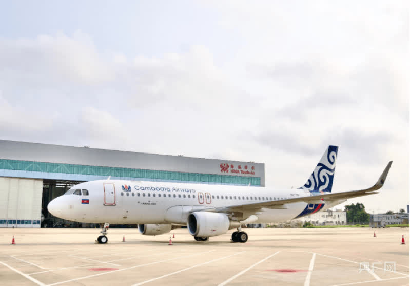 4月27日,柬埔寨国家航空的空客A320飞机驶入海南自贸港一站式飞机维修产业基地定检机库,该飞机将接受海航航空技术有限公司旗下大新华飞机维修服务有限公司提供的高级别定检维修服务。