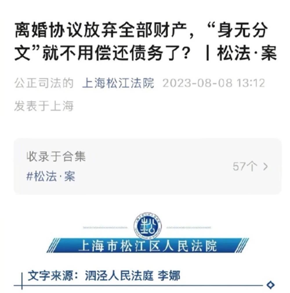 得知撞人需赔20万,男子秒离婚净身出户,两套房全归妻子,法院:离婚也不能逃债