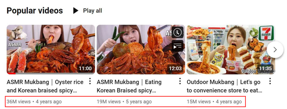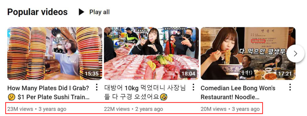 មកស្គាល់នារីកូរ៉េផលិតវីដេអូ Mukbang ល្បីៗទាំង ៦ រូបក្នុងនោះរួមមាន កញ្ញា Tzuyang កញ្ញា Hamzy កញ្ញា Boki កញ្ញា G-IN កញ្ញា Yang Soobin និងអ្នកនាង Ssoyoung។ ពួកគេទាំង ៦ នាក់នេះពិតជាមានប្រជាប្រិយភាពជាខ្លាំងទាំងនៅក្នុងស្រុកហើយនិងក្រៅស្រុក ដោយក្នុង ១ វិដេអូមានចំនួនអ្នកមើលលើស ៥០លានដង។