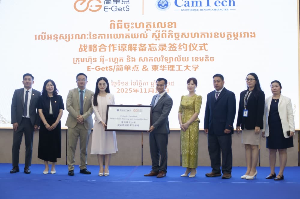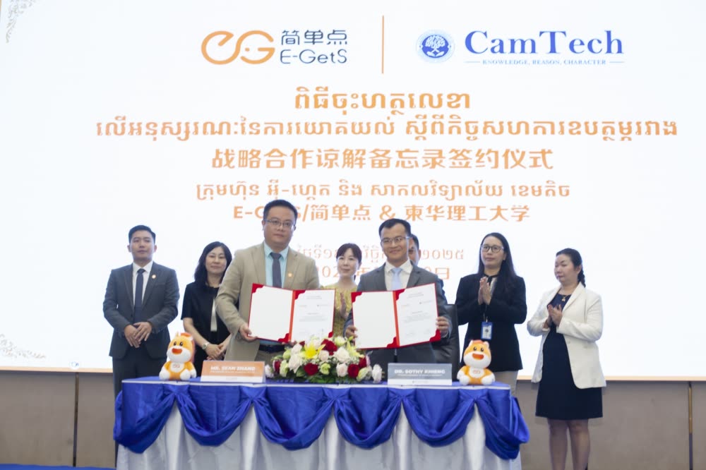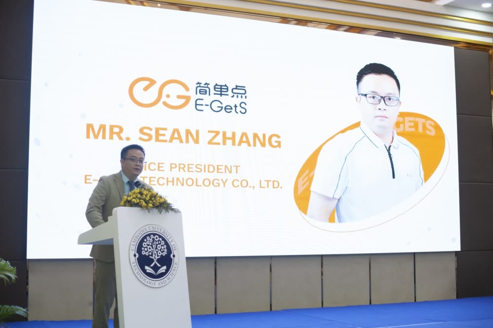 ក្នុងសន្និសីទឧស្សាហកម្ម និងពិព័រណ៍ការងារផងដែរ លោកZhang Juhui អគ្គនាយករងនៃក្រុមហ៊ុនE-GetS បានផ្តល់បទបង្ហាញអំពីប្រវត្តិនៃការអភិវឌ្ឍន៍វិសាលភាពអាជីវកម្ម និងវប្បធម៌សាជីវកម្មរបស់ E-GetS លោកក៏បានមានប្រសាសន៍ថានឹងទាញយកអត្ថប្រយោជន៍បច្ចេកវិទ្យា និងធនធានវេទិការបស់ខ្លួន ដើម្បីរួមគ្នាបង្កើតមូលដ្ឋានបណ្តុះបណ្តាលការងារ និងកម្មសិក្សាជាមួយសាកលវិទ្យាល័យខេមតិច ហើយនឹងបង្កើតអាហារូបករណ៍ដែលមានទឹកប្រាក់សរុប ចំនួន100,000 ដុល្លារ ដើម្បីគាំទ្រដល់គ្រូបង្រៀន និងនិស្សិតឆ្នើមៗនៃសាកលវិទ្យាល័យខេមតិចរយៈពេលប្រាំឆ្នាំជាប់ៗគ្នាដើម្បីបណ្តុះទេពកោសល្យឈានមុខគេ និងបង្កើតអោយមានបុគ្គលិកជំនាញឆ្នើមៗនៅក្នុងឧស្សាហកម្មបច្ចេកវិទ្យារបស់ប្រទេសកម្ពុជា។ថ្លែងនៅក្នុងសន្និសីទឧស្សាហកម្ម និងពិព័រណ៍ការងារនេះ លោកស្រីLilianជា Associate Vice President នៃសាកលវិទ្យាល័យខេមតិចបានសម្តែងនូវការស្វាគមន៍យ៉ាងកក់ក្តៅ និងថ្លែងអំណរគុណក្រុមហ៊ុនE-GetS ដែលបានផ្តល់នូវអាហារូបករណ៍ដល់និស្សិតខេមតិច ក្នុងការចូលរួមអភិវឌ្ឍវិស័យអប់រំនៅកម្ពុជា។ លោកស្រីបានលើកឡើងពីសម្តីរបស់បណ្ឌិតចិនដ៏ល្បីល្បាញថា «ប្រទេសរីកចម្រើនរុងរឿងដោយសារមានយុវជនដែលល្អ ប៉ិនប្រសព្ធនិងជំនាញល្អ»។