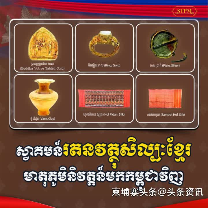 此次回归的艺术品和文物包括183幅高棉丝绸纺织品,以及硬币、珠子、首饰、贵金属器具、青铜器、石器和陶器等重要藏品。这些藏品涵盖了前吴哥时期和吴哥时期的石器和青铜器。