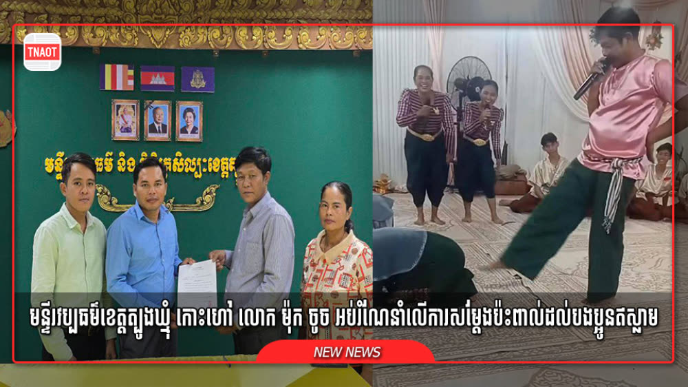 មន្ទីរវប្បធម៌និងវិចិត្រសិល្បៈខេត្តត្បូងឃ្មុំ បានបើកកិច្ចប្រជុំអប់រំណែនាំដល់ក្រុមសិល្បៈភ្លេងខ្មែរ ដែលមាន លោក ម៉ុក ចូច ជាប្រធានក្រុមសិល្បៈភ្លេងប្រពៃណីខ្មែរនាយចូច ស្ថិតនៅ ភូមិកោងកាង ឃុំកោងកាង ស្រុកពញាក្រែក ខេត្តត្បូងឃ្មុំ បានសម្តែងក្នុងពិធីបុកល័ក្ត នៃកម្មវិធីអាពាហ៍ពិពាហ៍ កាលពីថ្ងៃទី២៩ ខែវិច្ឆិកា ឆ្នាំ២០២៥ ដែលការសម្តែងនោះមានកាយវិការមិនសមរម្យប៉ះពាល់ដល់ការប្រតិបត្តិជំនឿសាសនាបងប្អូនសាសនិកឥស្លាម មកធ្វើការអប់រំណែនាំពីក្រមសីលធម៌នៃអ្នកសិល្បៈ និងធ្វើកិច្ចសន្យា ដើម្បីចៀសវាងមានការសម្តែងខុសឆ្គងលើកក្រោយទៀត។