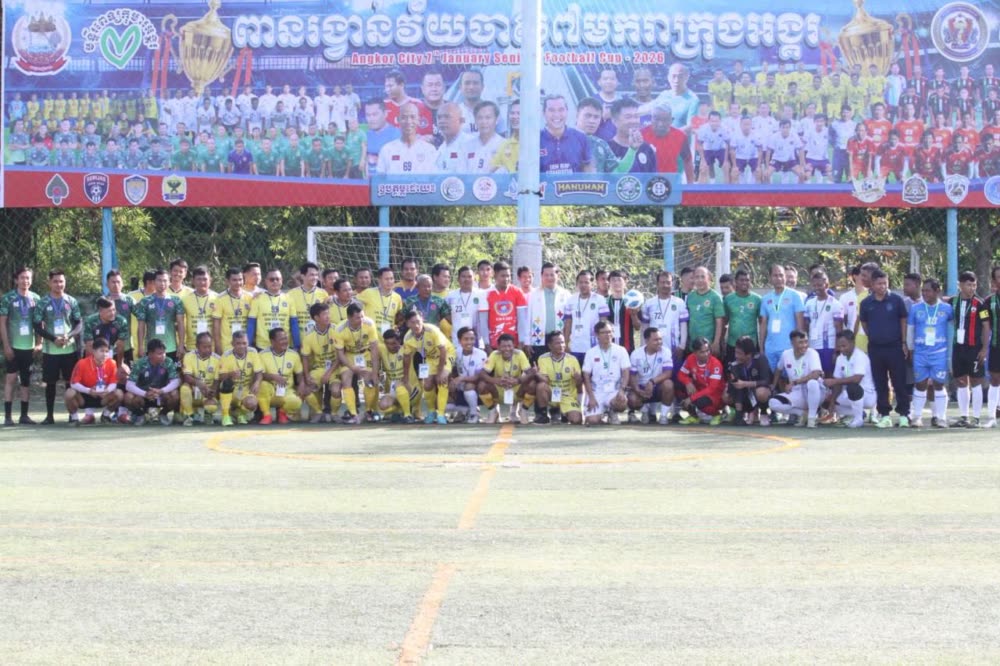 រដ្ឋបាលខេត្តសៀមរាប បានប្រកាសបើកការប្រកួតកីឡាបាល់ទាត់វ័យចាស់ “ពានរង្វាន់ ៧មករា ក្រុងអង្គរ” ខេត្តសៀមរាប ដើម្បីអបអរសាទរខួបលើកទី៤៧ នៃទិវាជ័យជម្នះ ៧មករា ១៩៧៩-២០២៦ ដែលពិធីនេះត្រូវបានប្រារព្ធធ្វើឡើងក្រោមអធិបតីភាព លោក លី សារី អភិបាលរងខេត្ត ដោយមានក្រុមកីឡាករមកពី ៨ ក្លិប ចូលរួម ដែលមានកីឡាករសរុប ១៧៦នាក់។