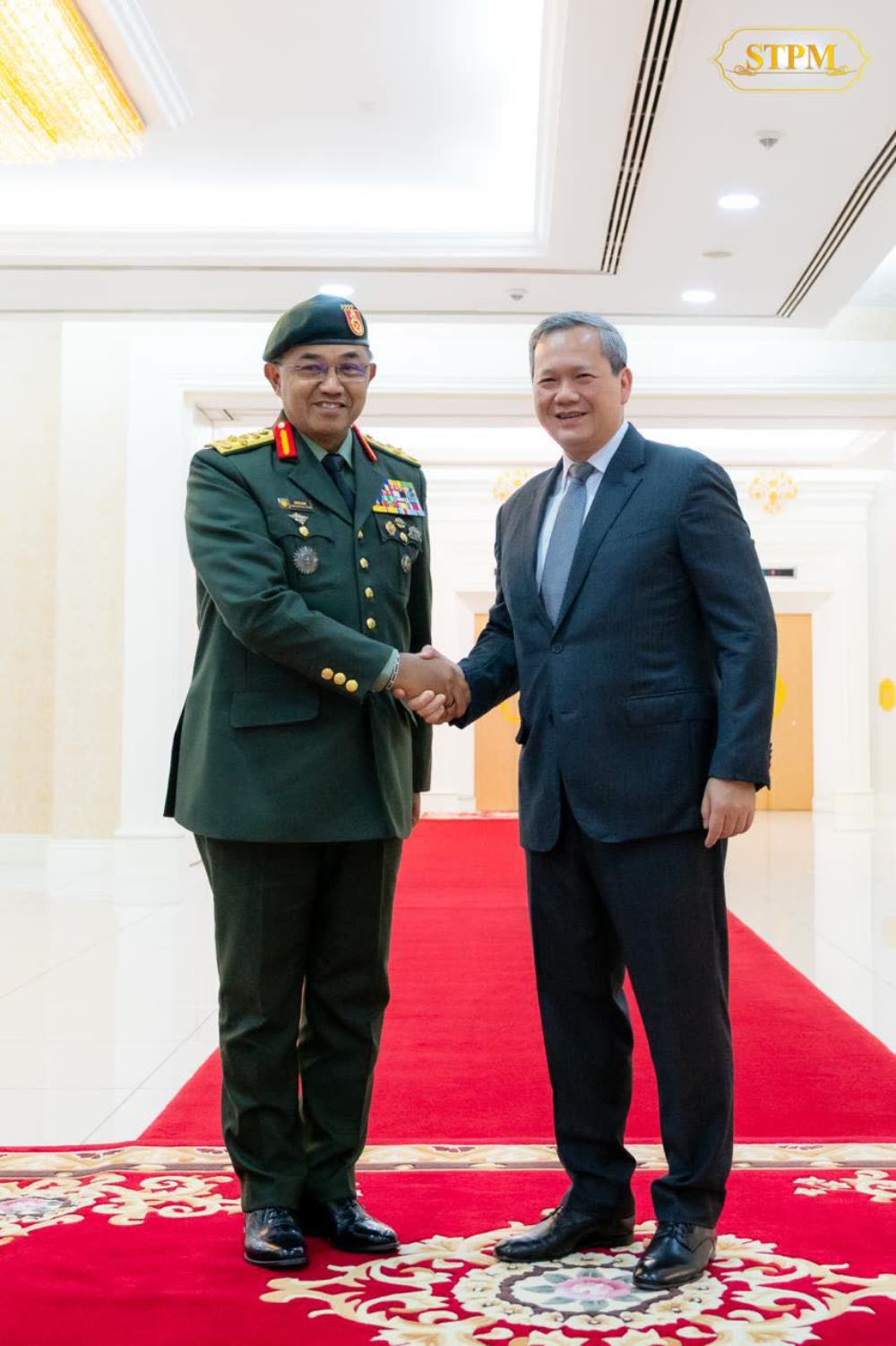 ជាការឆ្លើយតប, សម្តេចបវរធិបតី បានសម្តែងនូវការស្វាគមន៍យ៉ាងកក់ក្ដៅចំពោះ ឯកឧត្តមអគ្គមេបញ្ជាការកងទ័ពម៉ាឡេស៊ី និងគណៈប្រតិភូ និងបានវាយតម្លៃខ្ពស់ចំពោះតួនាទីរបស់ប្រទេសម៉ាឡេស៊ី ជាពិសេស តួនាទីដ៏សំខាន់របស់ឯកឧត្ដមនាយករដ្ឋមន្រ្តី Anwar Ibrahim ដែលបានចូលរួមចំណែកជួយសម្របសម្រួលឱ្យមានបទឈប់បាញ់ កាលពីថ្ងៃទី២៨ ខែកក្កដា ឆ្នាំ២០២៥ និង ការឈានទៅសម្រេចបាននូវសេចក្ដីថ្លែងការណ៍រួម កម្ពុជា-ថៃ ដែលបានចុះហត្ថលេខានៅទីក្រុងគូឡាឡាំពួ ប្រទេសម៉ាឡេស៊ី កាលពីថ្ងៃទី២៦ ខែតុលា ឆ្នាំ២០២៥ ក៏ដូចជាអរគុណដល់តួនាទីដ៏សកម្មរបស់ ឯកឧត្តមអគ្គមេបញ្ជាការ ក្នុងការដឹកនាំ និងសម្របសម្រួលក្រុមអ្នកសង្កេតការណ៍អាស៊ាន ស្របតាមបទឈប់បាញ់កម្ពុជា-ថៃ, ស្មារតីនៃកិច្ចប្រជុំគណ:កម្មាធិការព្រំដែនទូទៅកម្ពុជា-ថៃ និងខ្លឹមសារនៃសេចក្ដីថ្លែងការណ៍រួម កម្ពុជា-ថៃ ដែលបានចុះហត្ថលេខានៅទីក្រុងគូឡាឡាំពួ។