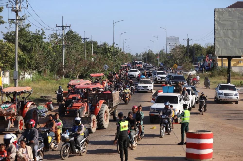 ទិដ្ឋភាពរបស់បងប្អូនប្រជាពលរដ្ឋជម្លៀសទៅកាន់ទីទួលសុវត្ថិភាពនៅព្រឹកថ្ងៃទី៨ ខែធ្នូ ឆ្នាំ២០២៥។ អាជ្ញាធរខេត្តឧត្តរមានជ័យបាននិងកំពុងសម្របសម្រួល និងជួយដល់បងប្អូនប្រជាពលរដ្ឋដើម្បីចាកចេញពីតំបន់គ្រោះថ្នាក់មកកាន់តំបន់សុវត្ថិភាព។