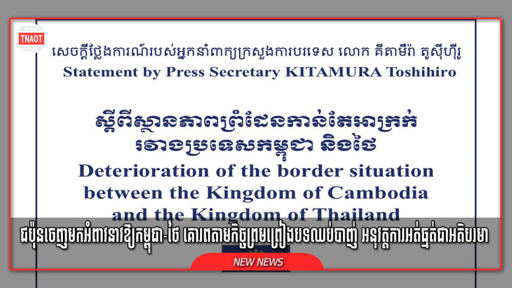 រដ្ឋាភិបាលជប៉ុន សម្តែងការព្រួយបារម្ភយ៉ាងខ្លាំង ចំពោះស្ថានភាពតានតឹងរវាងប្រទេសកម្ពុជា និងថៃ