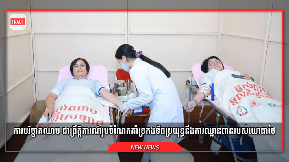 លោកជំទាវបណ្ឌិត ពេជ ចន្ទមុន្នី ជំរុញប្រជាពលរដ្ឋរួមគ្នាបរិច្ចាគឈាម ដើម្បីគាំទ្រកងទ័ព និងប្រជាជនព្រំដែន