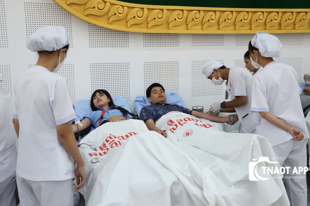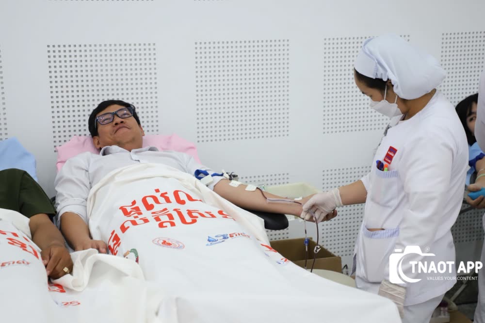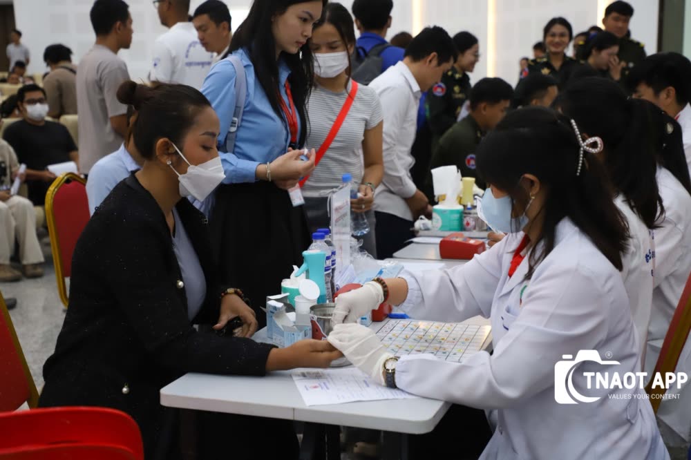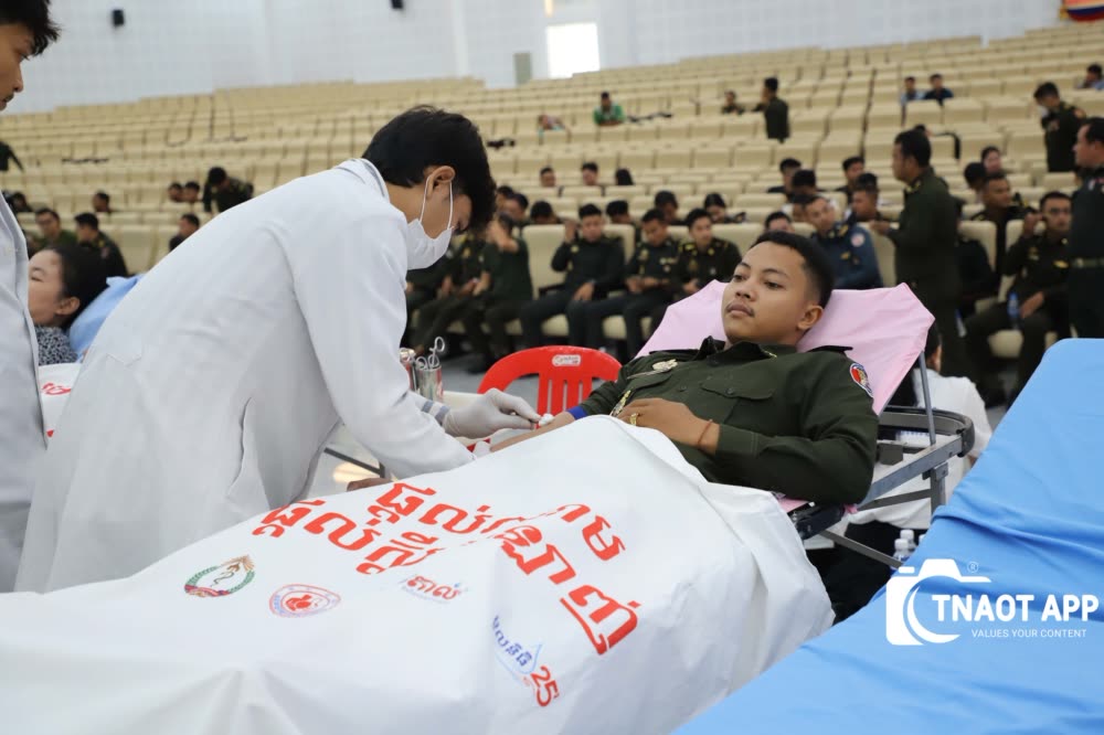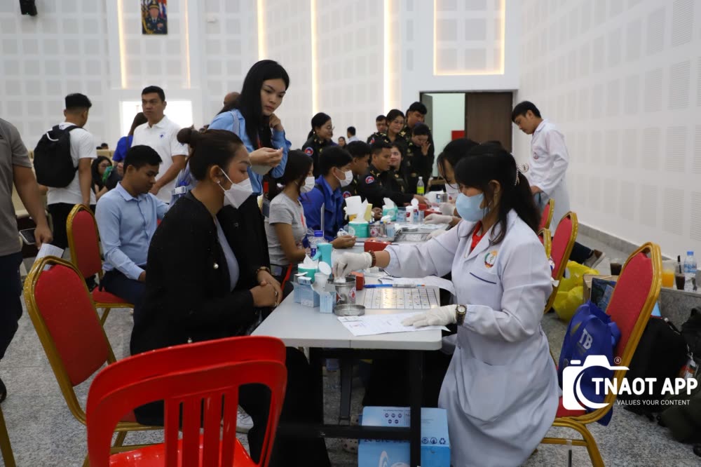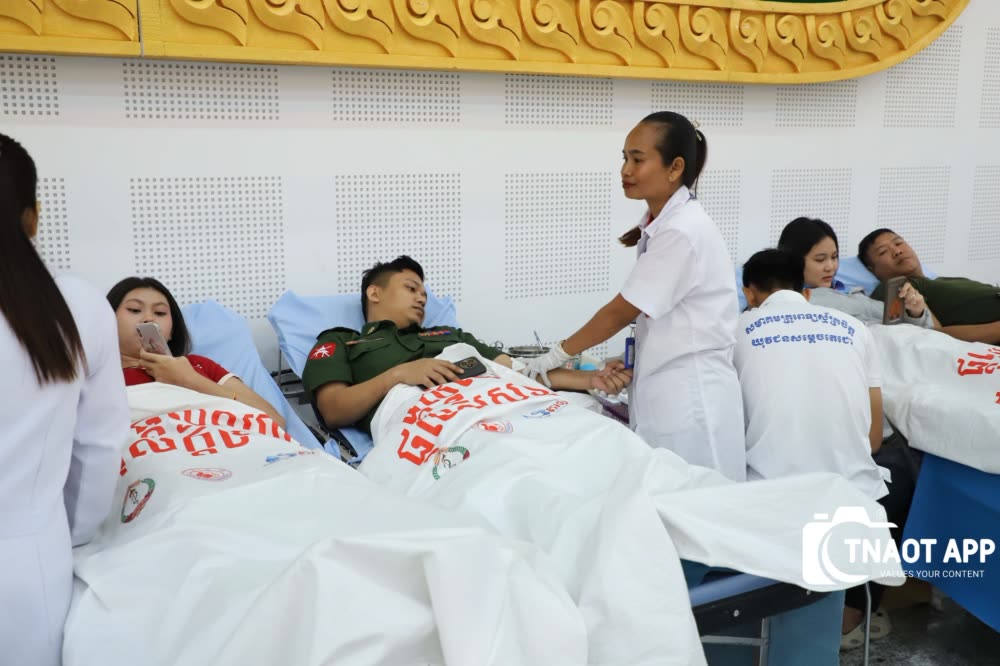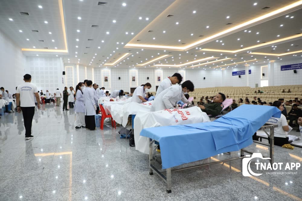 ប្រជាពលរដ្ឋខ្មែរច្រើនកុះករ បានទៅចូលរួមបរិច្ចាគឈាម នៅសាកលវិទ្យាល័យការពារជាតិ ដើម្បីជាកម្លាំងចិត្តជួយដល់កងទ័ពជួរមុខ និងប្រជាជននៅតាមព្រំដែន