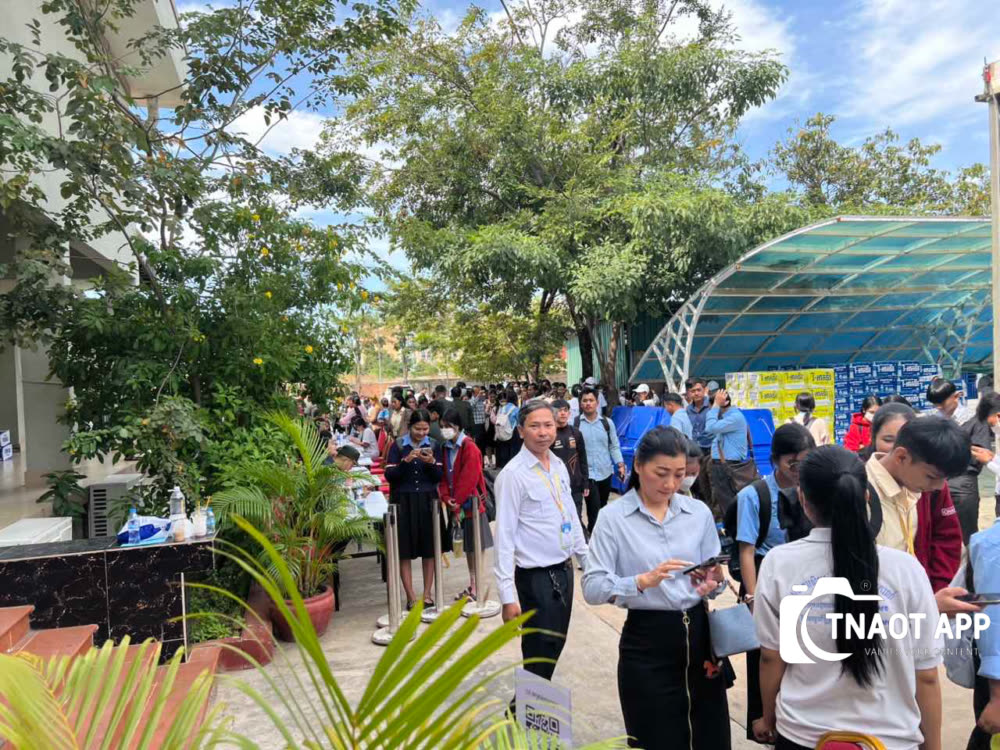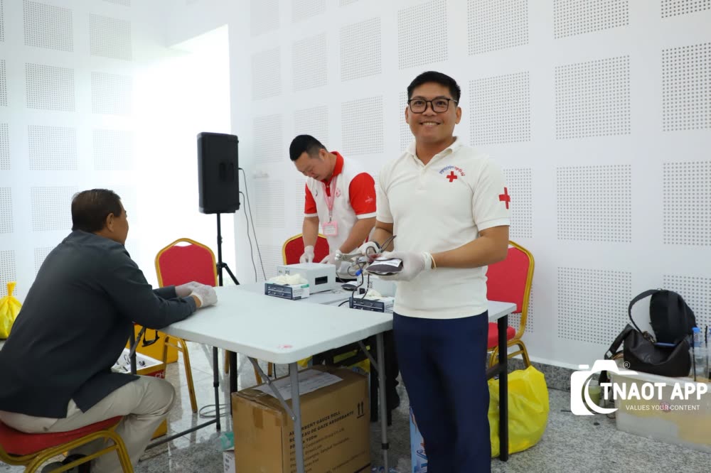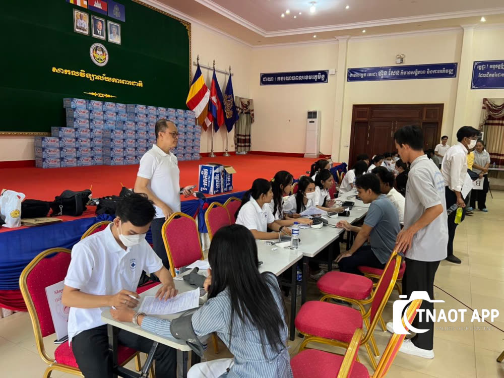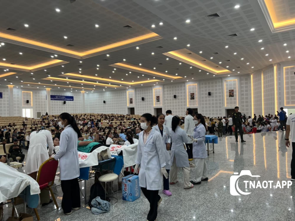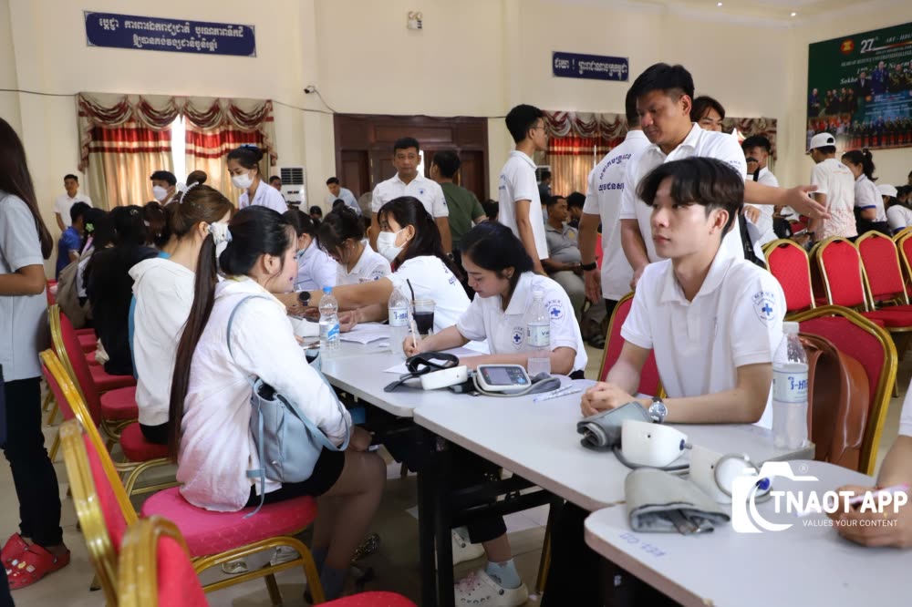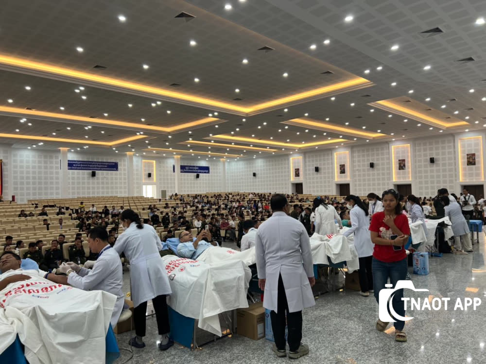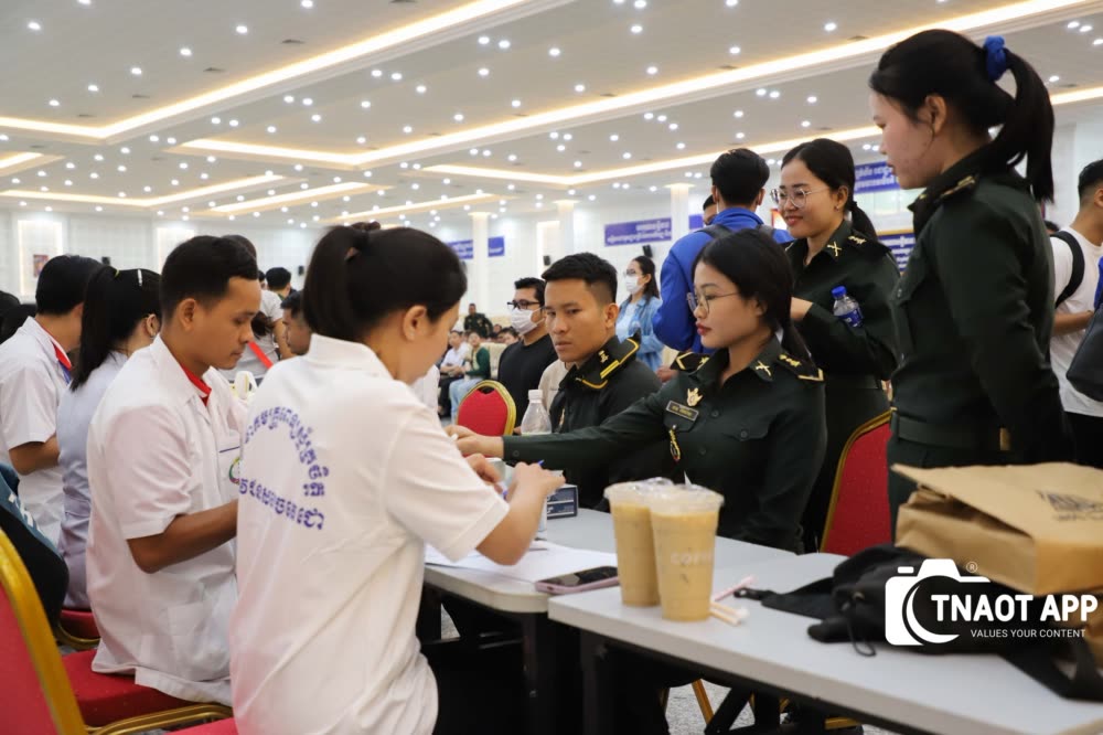 ប្រជាពលរដ្ឋខ្មែរច្រើនកុះករ បានទៅចូលរួមបរិច្ចាគឈាម នៅសាកលវិទ្យាល័យការពារជាតិ ដើម្បីជាកម្លាំងចិត្តជួយដល់កងទ័ពជួរមុខ និងប្រជាជននៅតាមព្រំដែន