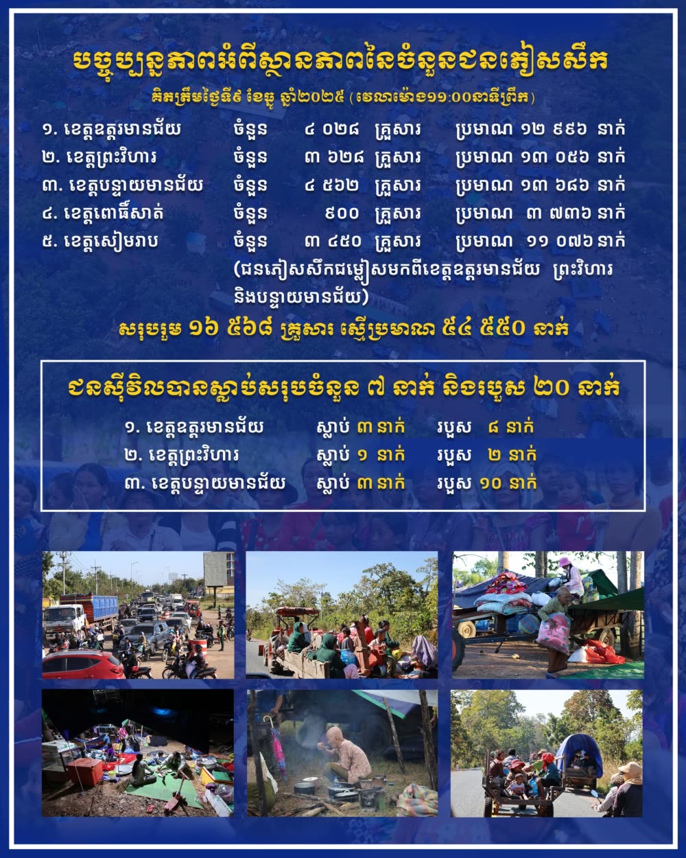 ស្ថានភាពជនភៀសសឹក ដោយសារយោធាថៃ បានបើកការវាយប្រហារឈ្លានពានមកលើកម្ពុជា ក្នុងយោធភូមិភាគ ទី៤ និងយោធភូមិភាគទី៥