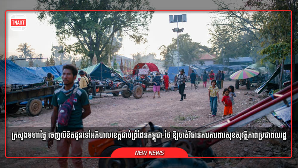 ក្រសួងមហាផ្ទៃ បានចេញលិខិតជូនទៅអភិបាលខេត្តជាប់ព្រំដែនកម្ពុជា-ថៃ ឱ្យចាត់វិធានការការពារសុខសុវត្ថិភាពប្រជាពលរដ្ឋ អធិបតេយ្យភាព និងបូរណភាពទឹកដី នៃព្រះរាជាណាចក្រកម្ពុជាចំពោះមុខសភាពការណ៍ឈ្លានពានពីសំណាក់យោធាថៃ។