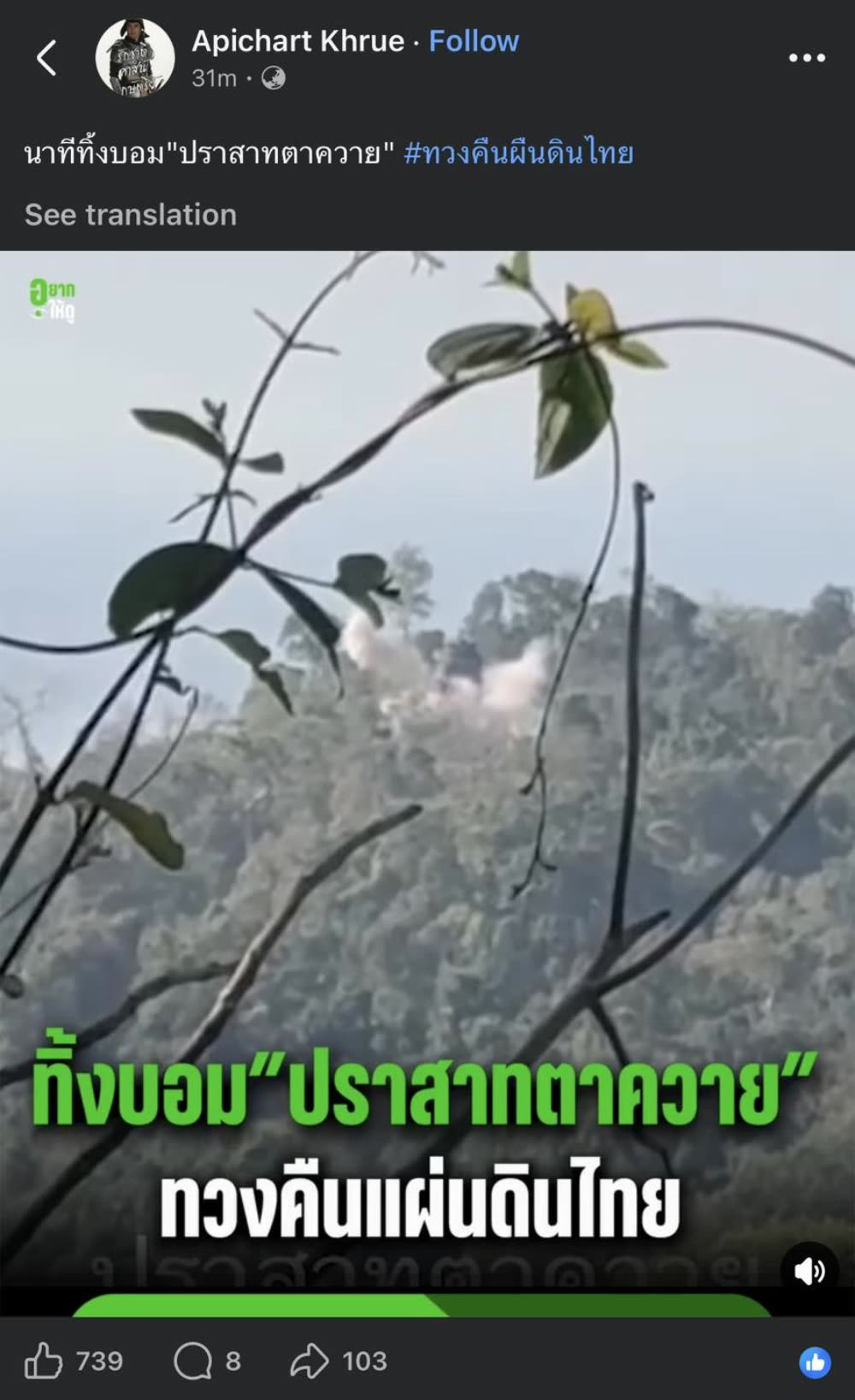 ទង្វើដ៏គឃ្លើននេះ រដ្ឋមន្រ្តីក្រសួងព័ត៌មាន ឯកឧត្តម នេត្រ ភក្ត្រា បានលើកឡើងថា យោធាថៃមិនមែនត្រឹមតែរំលោភបំពានលើអធិបតេយ្យនិងបូរណភាពទឹកដីកម្ពុជា ប្រើប្រាស់អាវុធធុនធ្ងន់ រួមទាំងយន្តហោះទម្លាក់គ្រាប់លើទីតាំងជនស៊ីវិលនោះទេ យោធាថៃបានបំផ្លិចបំផ្លាញប្រាង្គប្រាសាទខ្មែរ ដែលជាសម្បត្តិវប្បធម៌ដ៏មានតម្លៃ និងជាបេតិកភណ្ឌពិភពលោក។