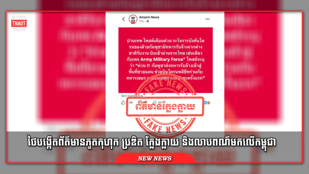 កម្ពុជាទាមទារឱ្យ ភាគីថៃបញ្ឈប់រាល់ការផ្សព្វផ្សាយព័ត៌មានមិនពិតដោយចេតនា ក្នុងគោលដៅបង្វែរការចាប់អារម្មណ៍អំពីការរំលោភបំពានច្បាប់អន្តរជាតិរបស់ខ្លួនដោយលាបពណ៌កម្ពុជា ដើម្បីយកលេសប្រើប្រាស់អាវុធកាន់តែសាហាវមកលើកម្ពុជា។
