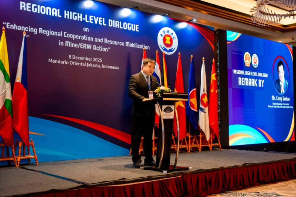 中国外交部军控司司长梁国韬代表中方发言,表达了对受地雷影响社区的深切关怀。他表示,中国将继续通过物资援助、能力建设和专家指导等方式支持东盟国家,并指出:“中国愿继续为东盟实现无雷目标提供支持。每一个家庭得以重建家园,每一个儿童得以安全成长,都是我们共同努力的成果。”