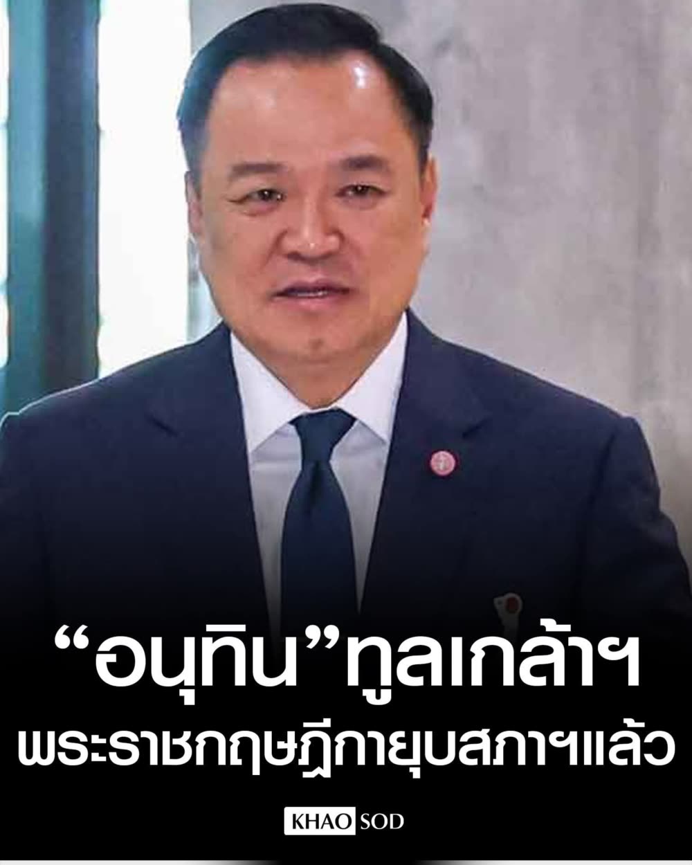 ព្រះមហាក្សត្រថៃ មហា វ៉ាជីរ៉ាឡុងកន ក្រោយមកបានគាំទ្រក្រឹត្យនេះ ដែលបានប្រកាសនៅថ្ងៃសុក្រថា ព្រះមហាក្សត្រថៃ មហា វ៉ាជីរ៉ាឡុងកន បានអនុម័តដោយបើកផ្លូវសម្រាប់ការបោះឆ្នោតមុនកាលកំណត់ ដែលតាមច្បាប់ត្រូវតែធ្វើឡើងក្នុងរយៈពេល ៤៥ ទៅ ៦០ ថ្ងៃខាងមុខ។ ភាពចលាចលនយោបាយកើតឡើងស្របគ្នានឹងថ្ងៃទីបួននៃជម្លោះព្រំដែនដ៏ខ្លាំងក្លារវាងប្រទេសថៃ និងកម្ពុជា ដែលយ៉ាងហោចណាស់មនុស្ស ២០ នាក់ត្រូវបានសម្លាប់ និងជិត ២០០ នាក់រងរបួស។ លោក អនុទីន បានប្រាប់អ្នកយកព័ត៌មាននៅថ្ងៃពុធថា ការរំលាយសភានឹងមិនប៉ះពាល់ដល់ប្រតិបត្តិការយោធារបស់ប្រទេសថៃតាមបណ្តោយព្រំដែនទេ ជាកន្លែងដែលការប៉ះទង្គិចគ្នាបានផ្ទុះឡើងនៅទីតាំងជាងដប់កន្លែង ដែលខ្លះពាក់ព័ន្ធនឹងការដោះដូរកាំភ្លើងធំធុនធ្ងន់៕