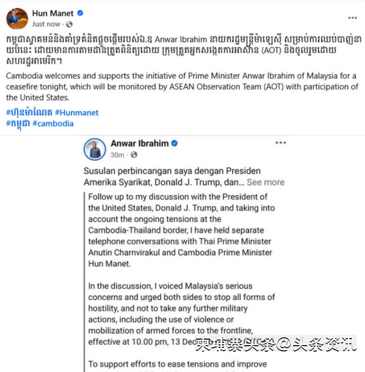 #政治# #柬埔寨# #立即停火# #马来西亚总理# #洪玛奈#
