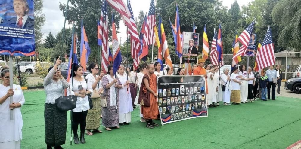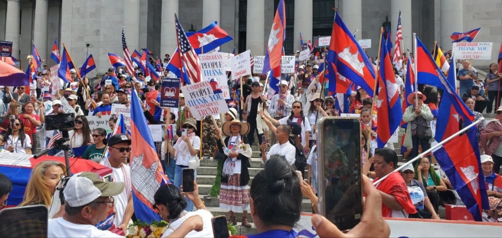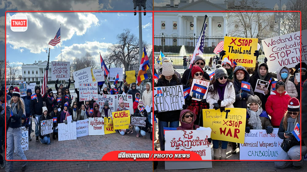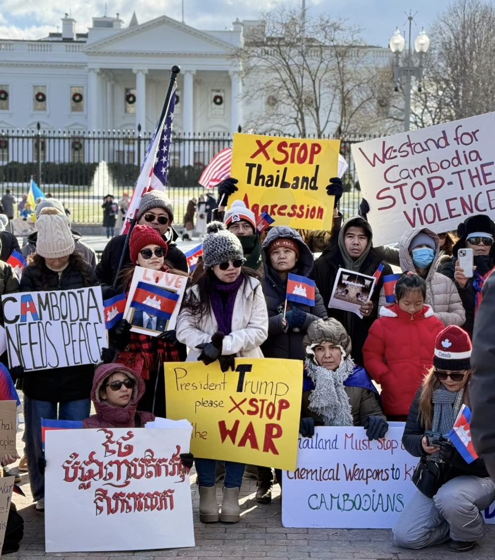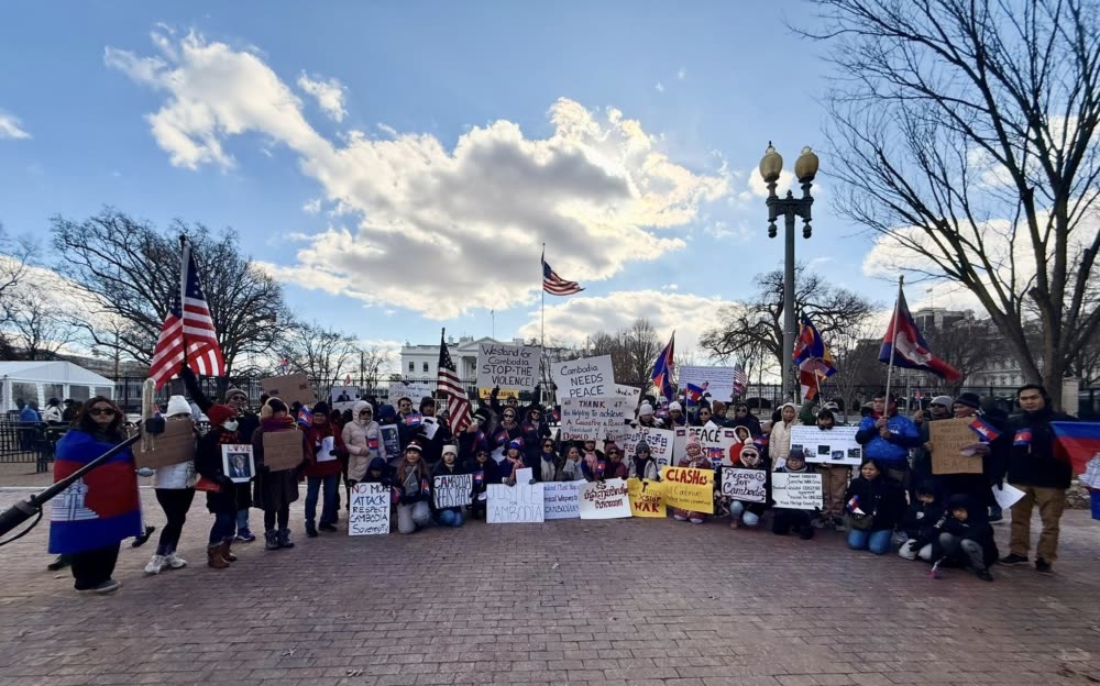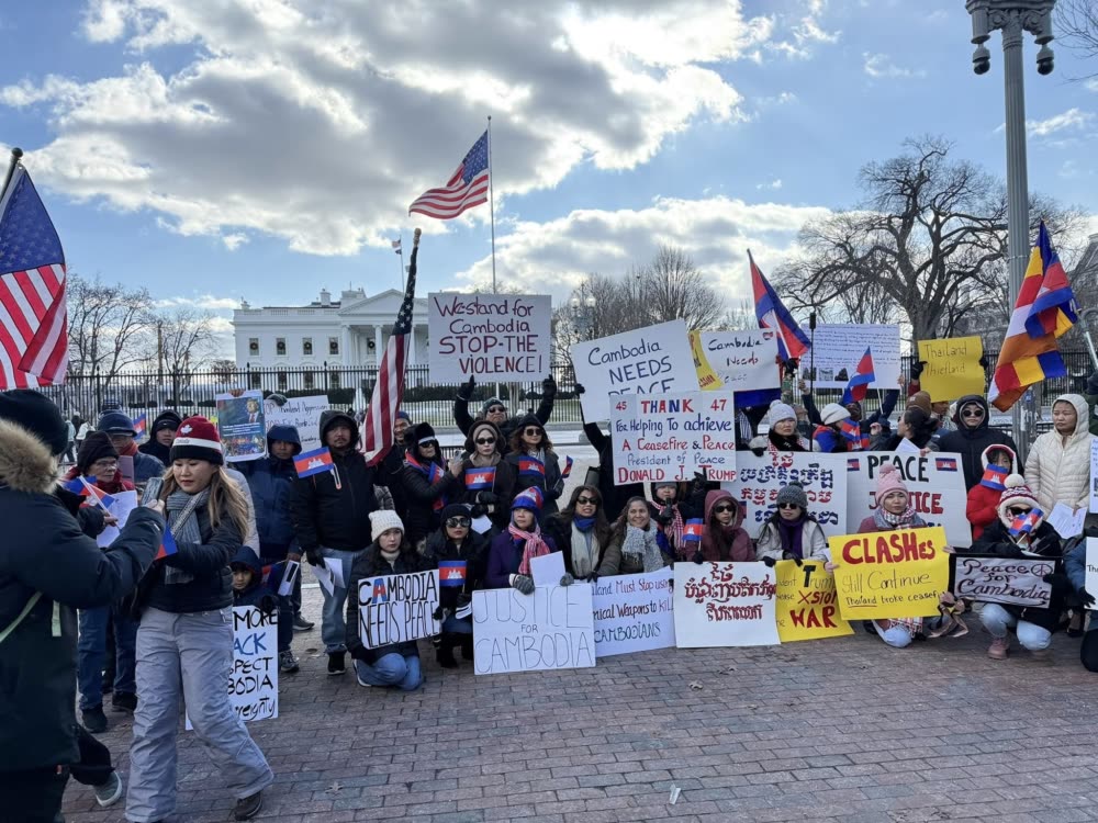 បងប្អូនជនរួមជាតិខ្មែរដែលកំពុងរស់នៅសហរដ្ឋអាមេរិក បានប្រមូលផ្គុំគ្នាធ្វើបាតុកម្មតវ៉ាដោយសន្ដិវិធីនៅមុខសេតវិមានប្រធានាធិបតីសហរដ្ឋអាមេរិក