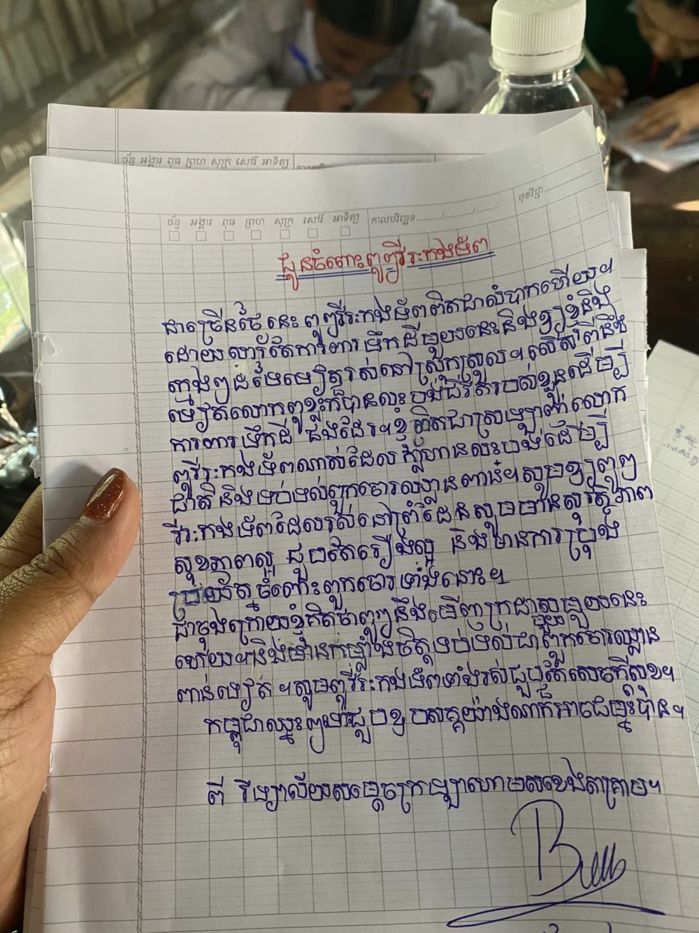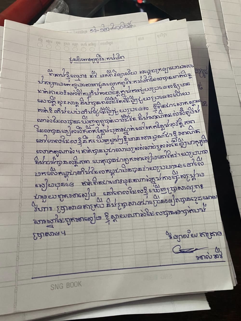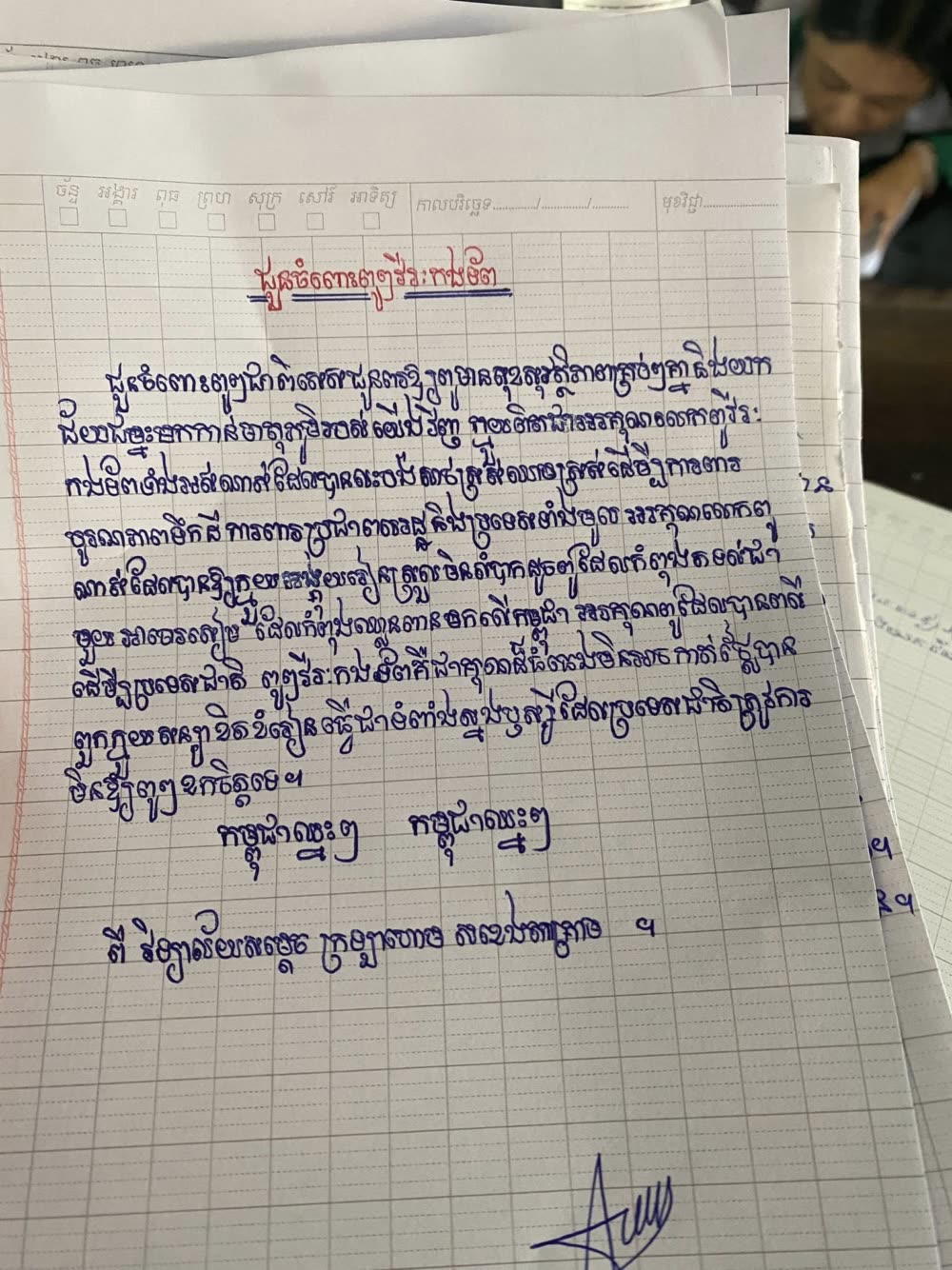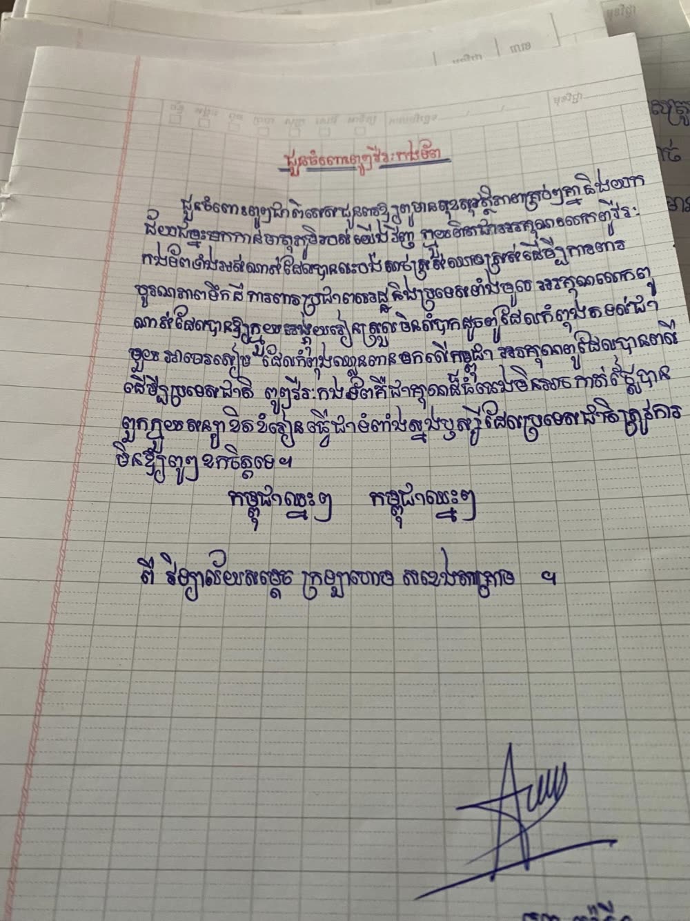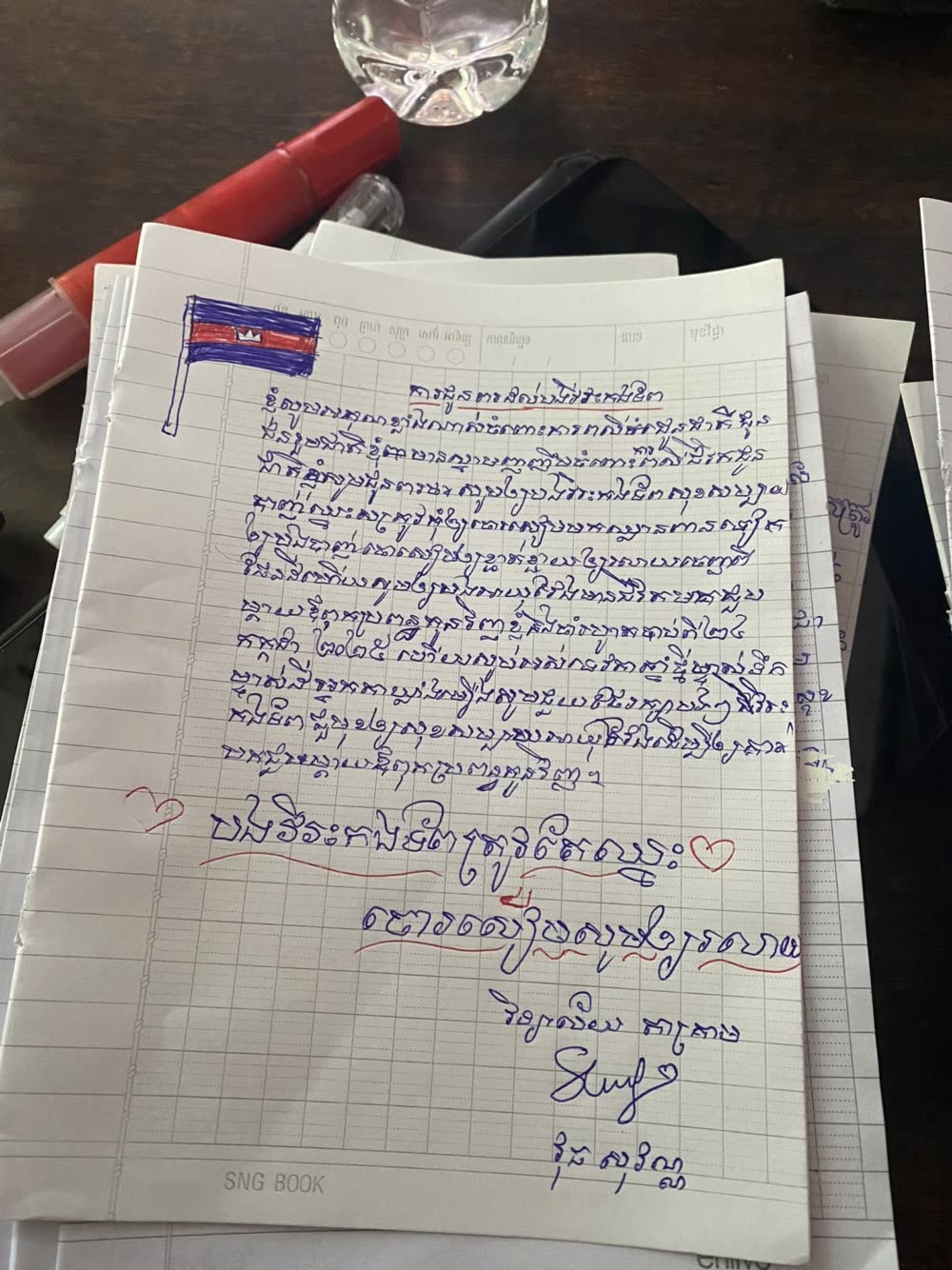 សំណេរលើកទឹកចិត្ត និងបង្ហាញការដឹងគុណដ៏ជ្រាលជ្រៅចំពោះវីរៈភាព ការលះបង់របស់កងយោធពលខេមរភូមិន្ទ របស់សិស្សមកពីវិទ្យាល័យ សម្តេចក្រហោម ស ខេង តាគ្រាម។