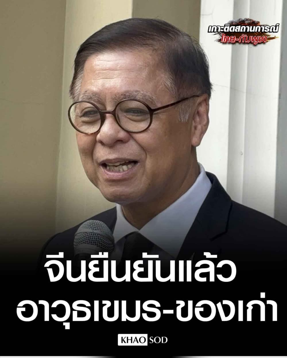 រដ្ឋមន្ត្រីការបរទេសថៃ លោក ស៊ីហាសាក់ បាននិយាយនៅថ្ងៃអង្គារនេះថា ប្រទេសចិនបានបញ្ជាក់ថា អាវុធធុនធ្ងន់របស់កម្ពុជាគឺចាស់ហើយ និងបានសង្កត់ធ្ងន់ថា កម្ពុជាត្រូវតែបញ្ឈប់ការបាញ់ប្រហារជាមុនសិន៕