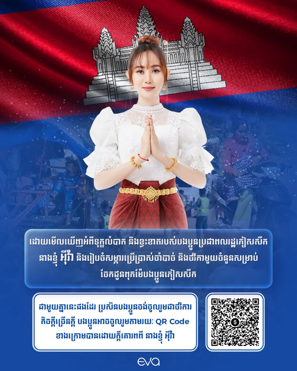 នេះបើតាមសំណេររបស់ កញ្ញា អុីវ៉ា បានរៀបរាប់បែបនេះថា៖ «ខ្ញុំឆ្ងល់អើយឆ្ងល់ តើជនដែលព្យាយាមក្លែងបន្លំ បោកប្រាស់ទាំងអស់នេះពួកគាត់មាន ឈាមជាខ្មែរ មានបេះដូងបរិសុទ្ធជាខ្មែរដែលអត់ណ៎...? ប្រទេសជាតិយើងកំពុងជួបបញ្ហា ត្រូវបានចោរជាប់ផ្ទះឈ្លានពានហើយ ឥឡូវត្រូវចោរគ្នាឯងឆ្លៀត បន្លំបោកប្រាស់ ដើម្បីយកថវិកាជំនួយពីពុកម៉ែបងប្អូនសប្បុរសជនទៀត ហុឹម អត់ដឹងត្រូវនិយាយបែបមិចទើបសមទេ»