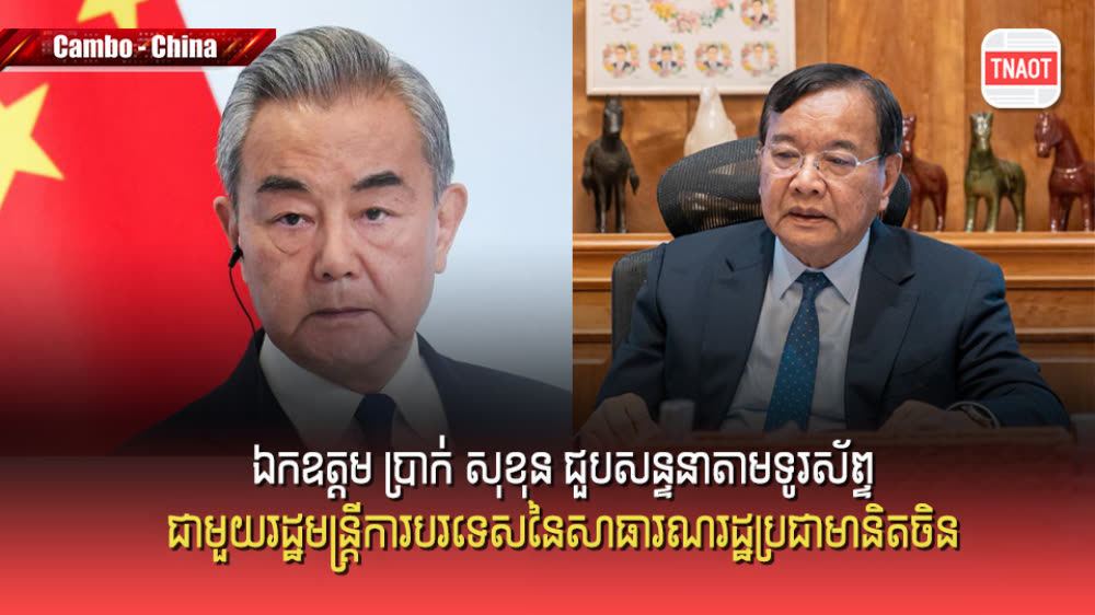 ឯកឧត្តម ប្រាក់ សុខុន ឧបនាយករដ្ឋមន្ត្រី និងរដ្ឋមន្ត្រីការបរទេស និងសហប្រតិបត្តិការអន្តរជាតិនៃព្រះរាជាណាចក្រកម្ពុជា បានសន្ទនាតាមទូរស័ព្ទជាមួយ ឯកឧត្តម វ៉ាង យី សមាជិកការិយាល័យនយោបាយនៃគណៈកម្មការមជ្ឈិមបក្សកុម្មុយនីស្តចិន និងជារដ្ឋមន្ត្រីការបរទេសនៃសាធារណរដ្ឋប្រជាមានិតចិន។