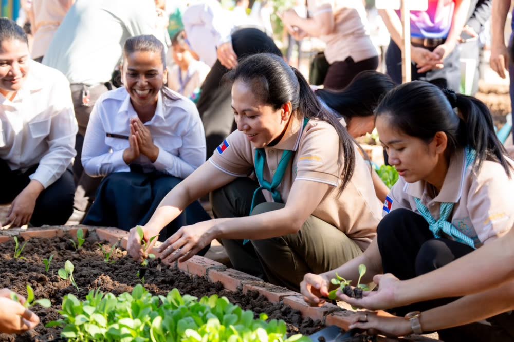 ដោយចំនួនប្រជាពលរដ្ឋភៀសសឹកកើនឡើង លោកជំទាវបណ្ឌិតស្រ្តីទី១កម្ពុជា បានបណ្តុះគំនិតឲ្យមានការដាំដុះបន្លែ ផ្លែឈើហូបផ្លែនៅតាមទីតាំងជំរុំភៀសសឹក ដើម្បីធានាបាននូវសន្តិសុខស្បៀង ប្រមូលផលទុកជូនគ្រួសារកងទ័ព បងប្អូនភៀសសឹកសម្រាប់ផ្គត់ផ្គង់ប្រចាំថ្ងៃ ព្រោះមិនអាចដឹងថាសង្រ្គាមនេះនឹងបញ្ចប់នៅពេលណា ហើយស្បៀងពីសប្បុរសជន និងរដ្ឋាភិបាលក៏អាចមានចន្លោះផ្គត់ផ្គង់មិនទាន់ពេលពេលវេលាផងដែរ។