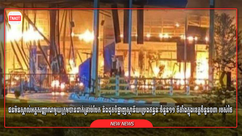 ជនមិនស្គាល់អត្តសញ្ញាណមួយក្រុមបានដាក់គ្រាប់បែក និងដុតបំផ្លាញស្ថានីយប្រេងឥន្ធនៈចំនួន១១ ទីតាំងក្នុងខេត្តចំនួន០៣ របស់ថៃ