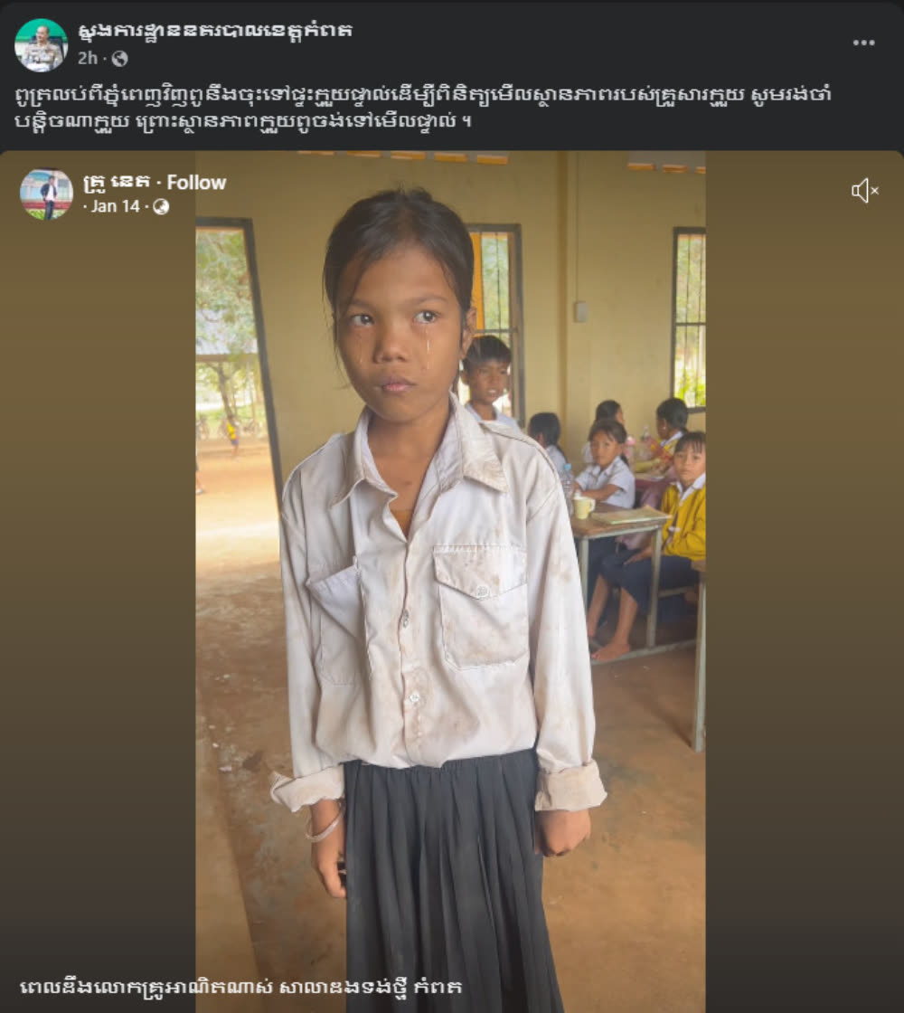 ស្នងការនគរបាលខេត្តកំពត ប្រកាសនឹងចុះជួយទៅកាន់កុមារីម្នាក់ដែលខ្វះខាតសំលៀកបំពាក់សិក្សា