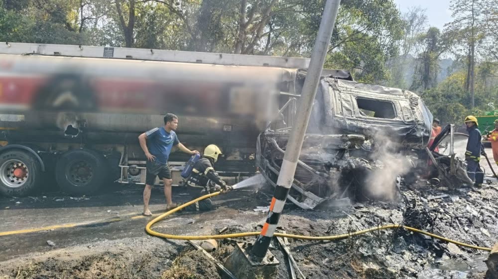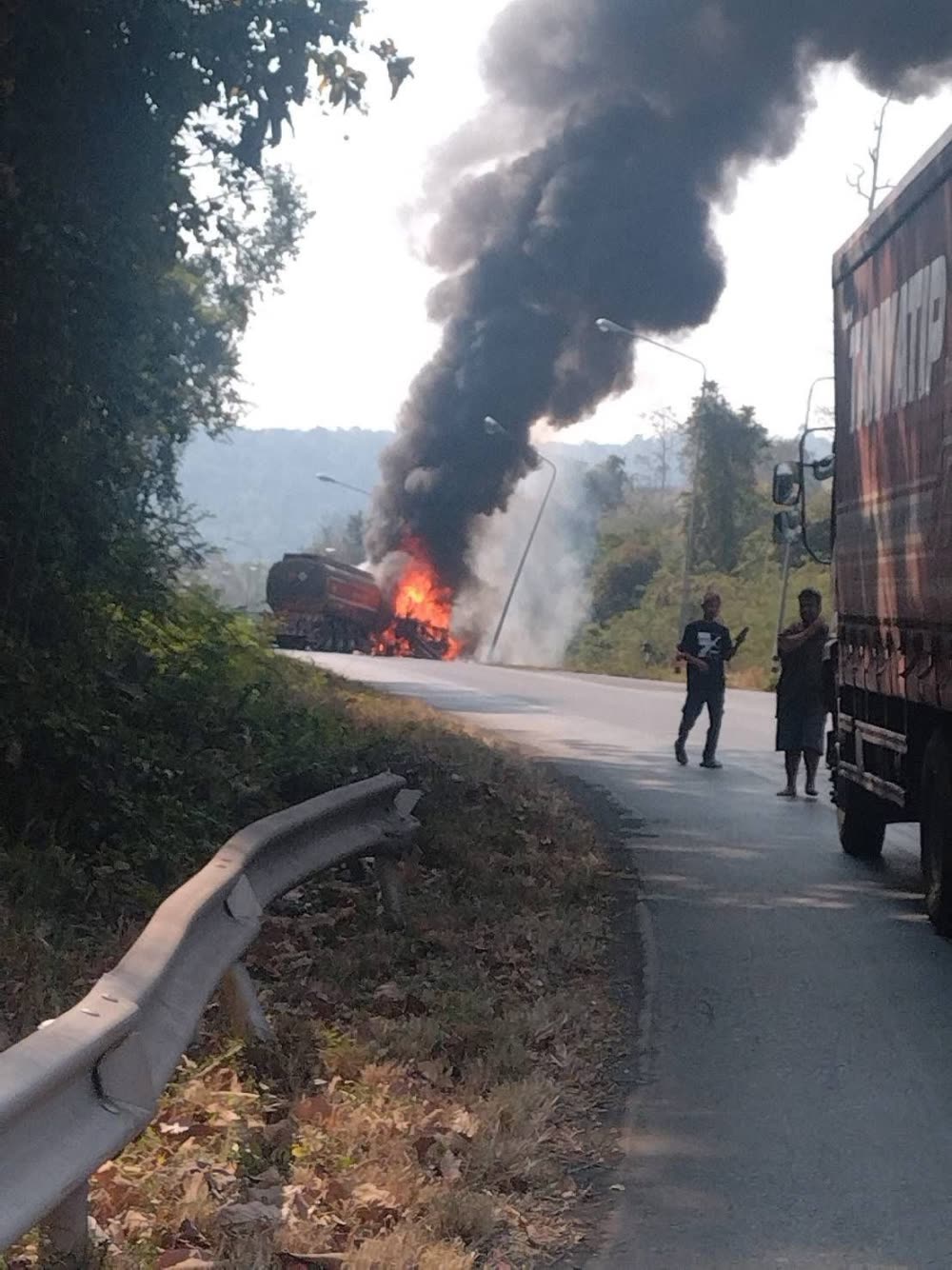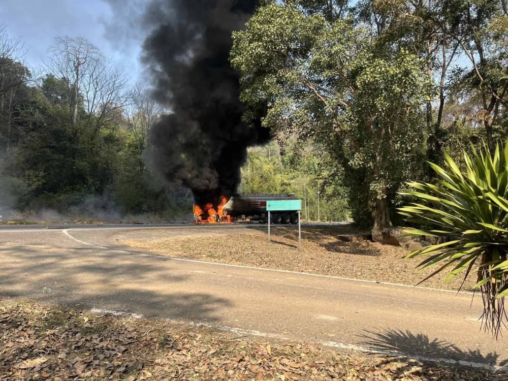 រថយន្តដឹកប្រេងឥន្ធនៈមួយគ្រឿង ត្រូវបានអគ្គិភ័យឆាបឆេះនៅលើផ្លូវភ្នំកូរ៉ាត ខេត្តនគររាជសីមា