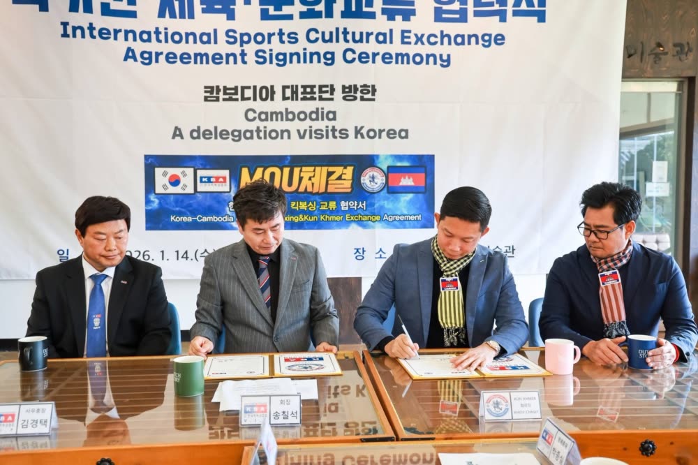 សហព័ន្ធកីឡាប្រដាល់គុនខ្មែរ បានបន្តពង្រីកវិសាលភាពរបស់ខ្លួនលើឆាកអន្តរជាតិ តាមរយៈការចុះហត្ថលេខាលើអនុសារណៈយោគយល់គ្នា (MOU) ជាមួយសហព័ន្ធកីឡាឃីកបុកស៊ីង នៃសាធារណរដ្ឋកូរ៉េ នៅថ្ងៃទី១៤ ខែមករា ឆ្នាំ២០២៦ នៅទីក្រុងក្វាងជូ សាធារណរដ្ឋកូរ៉េ។