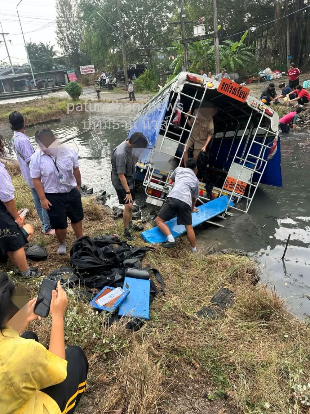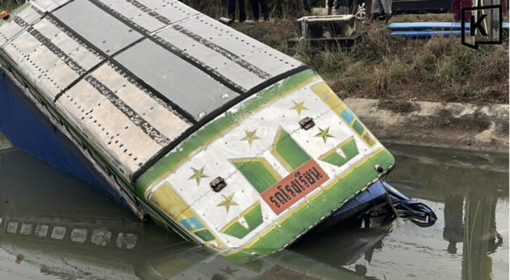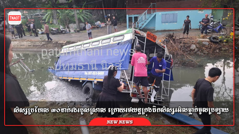 រថយន្តក្រុងដឹកសិស្សនៅថៃ ធ្លាក់ចូលទៅក្នុងប្រឡាយទឹក បណ្តាលឲ្យសិស្ស ៣០នាក់រងរបួស
