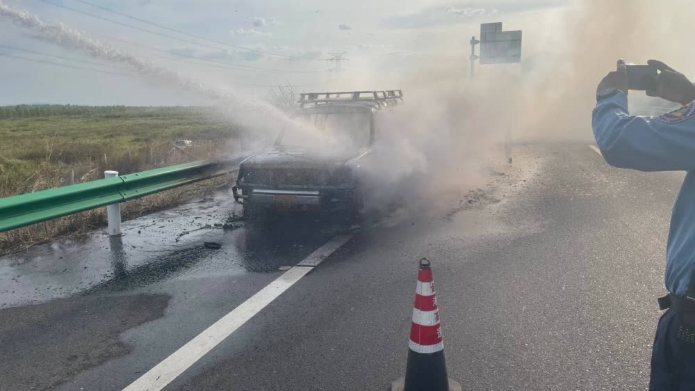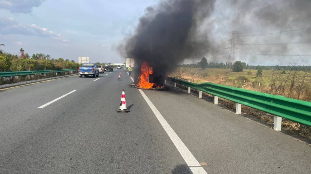 ករណីអគ្គិភ័យឆាបឆេះរថយន្ដ១គ្រឿង ម៉ាក MITSUBISHI PAJERO នៅផ្លូវល្បឿនលឿន ខូចខាតអស់ទាំងស្រុង