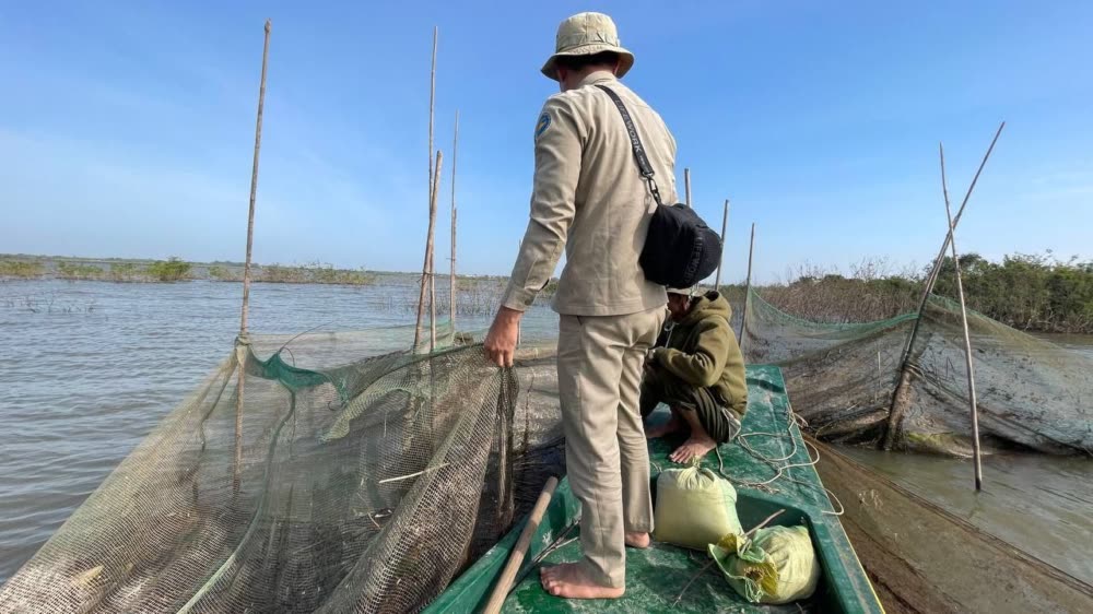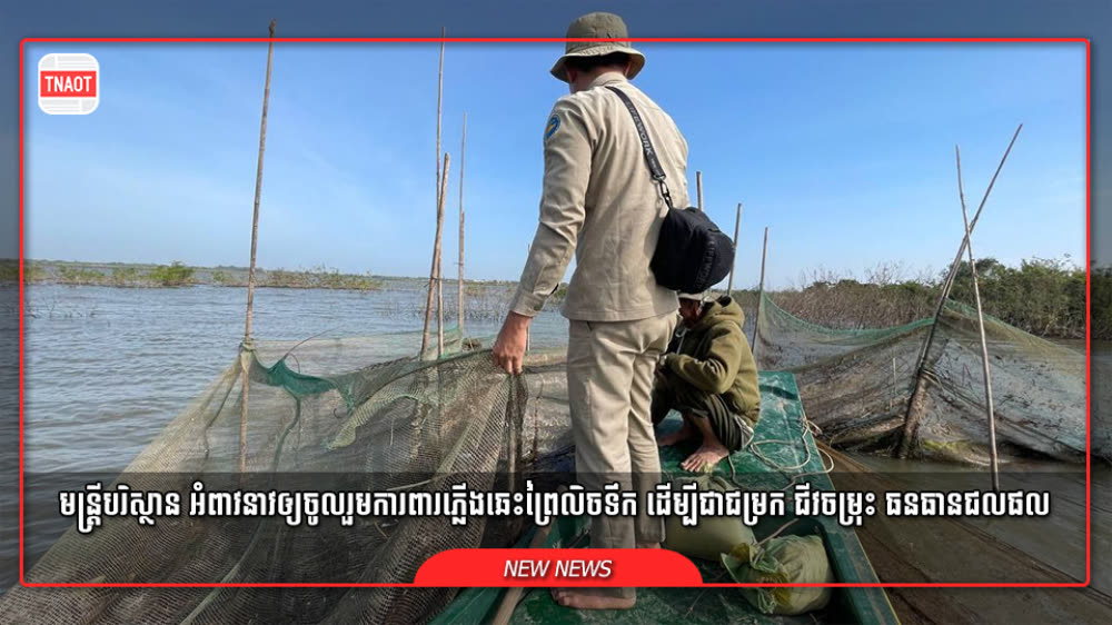 មន្ត្រីជំនាញ ចុះបោះស្លាកសញ្ញាហាមឃាត់ និងបោះបង្គោលព្រំការពារភ្លើងឆេះព្រៃលិចទឹក និងបង្ក្រាបបទល្មើសនេសាទ