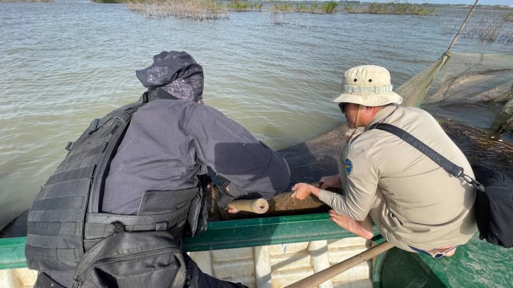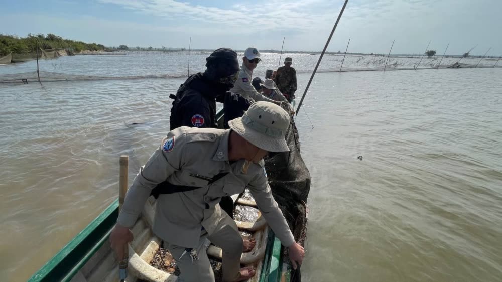 ទន្ទឹមនឹងនេះ ក្រុមការងារជំនាញ ក៏បានបន្តចុះល្បាត ត្រួតពិនិត្យ និងបង្រ្កាបបទល្មើសជលផលនានា នៅក្នុងភូមិសាស្រ្តចំណុចបឹងកាង ឃុំព្រះធាតុ ស្រុកអូររាំងឪ ខេត្តត្បូងឃ្មុំ ដោយបានរុះរើ បំផ្លាញចោល ឧបករណ៍នេសាទស្បៃមុងខុសច្បាប់ ស្មើ ១ករណី រួមមាន៖ ឧបករណ៍លូស្បៃមុង ៥មាត់ របាំងស្បៃមុង ២៥០ម៉ែត្រ និងបង្គោលចម្រឹងចំនួន ៨០ដើម៕