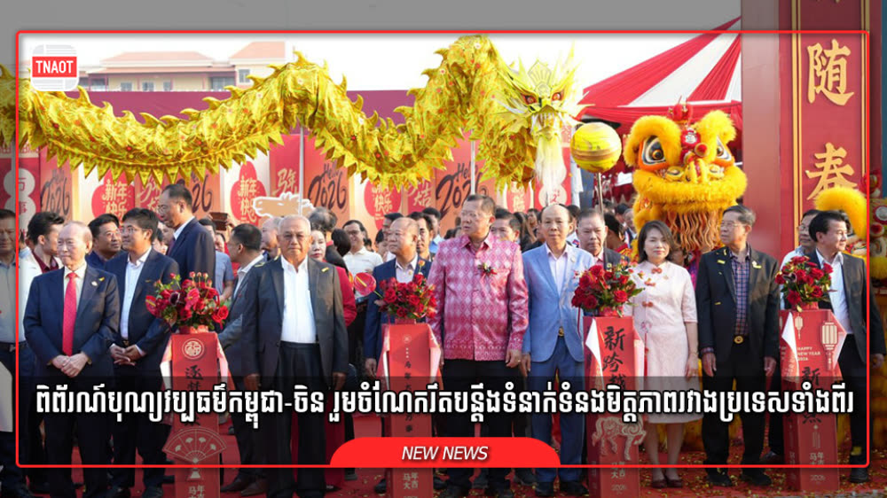 សម្ពោធពិព័រណ៍បុណ្យវប្បធម៌កម្ពុជា-ចិន ក្រោមប្រធានបទ “រីករាយបុណ្យចូលឆ្នាំចិន” ឆ្នាំ២០២៦ ដែលប្រព្រឹត្តិទៅមានរយៈពេល៣ថ្ងៃ នៅរាជធានីភ្នំពេញ ដើម្បីបង្ហាញពីការចងចាំវប្បធម៌រួមគ្នា លើកកម្ពស់ការអភិវឌ្ឍកម្ពុជា ពង្រឹងមិត្តភាពកម្ពុជា-ចិន និងជំរុញឱ្យយុវជនរួបរួមគ្នាកាន់តែខ្លាំង ដើម្បីរួមចំណែកដល់ការអភិវឌ្ឍសហគមន៍ចិន និងទំនាក់ទំនងមិត្តភាពរវាងប្រទេសទាំងពីរ ក្រោមវត្តមាន លោកអ្នកឧកញ៉ា ពុង ឃាវសែ ជាប្រធានសមាគមសម្ព័ន្ធខ្មែរចិននៅកម្ពុជា និងឯកឧត្តម ជាំង ណាន (JIANG Nan) ភារធារីស្ថានទូតចិនប្រចាំកម្ពុជា, ឧកញ៉ា ដួង តិច អនុប្រធានសមាគមសម្ព័ន្ធខ្មែរចិននៅកម្ពុជា និងជាប្រធានក្រុមយុវជន នៃសមាគមសម្ព័ន្ធកម្ពុជា-ចិននៅកម្ពុជា។