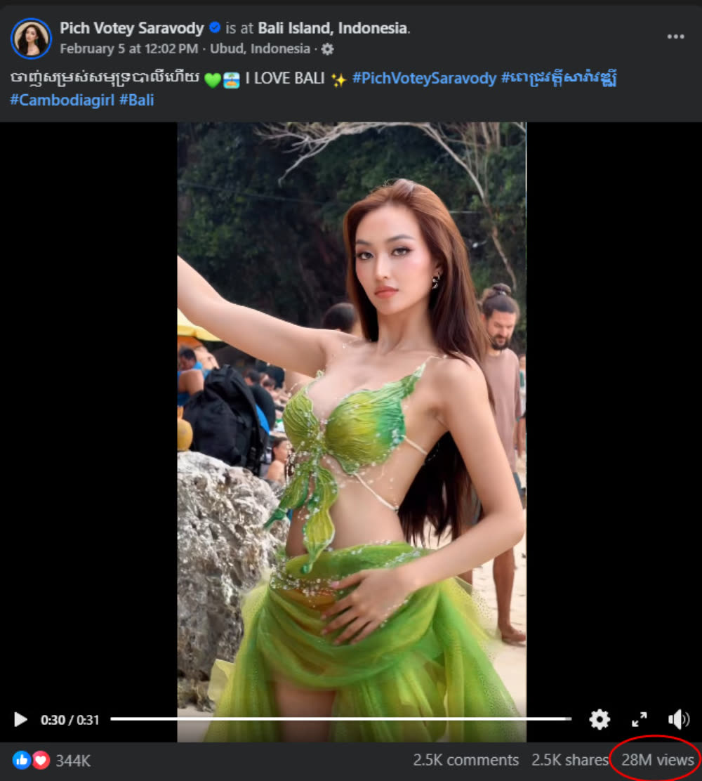 មិនធម្មតា! កញ្ញា ពេជ្រ វត្តីសារ៉ាវឌ្ឍី ផលិតវីដេអូថ្មីៗបង្ហាញសម្រស់ដ៏ទាក់ទាញមានអ្នកចុចទស្សនាជិត ៣០លានដង