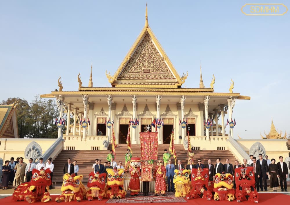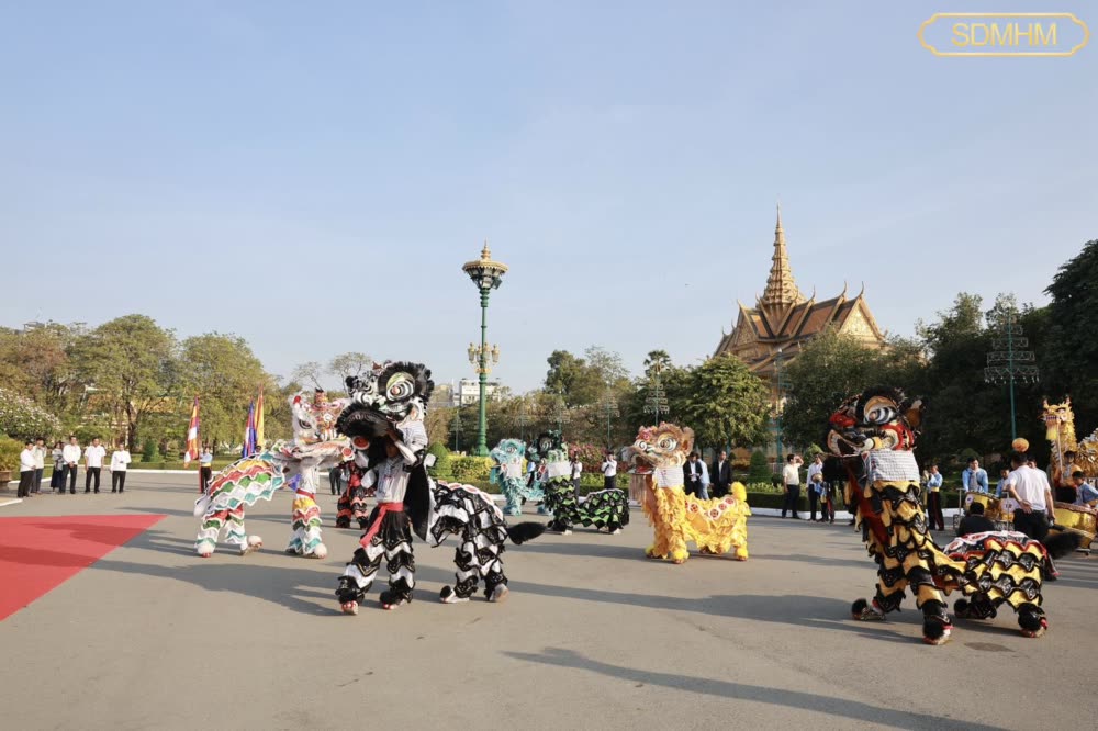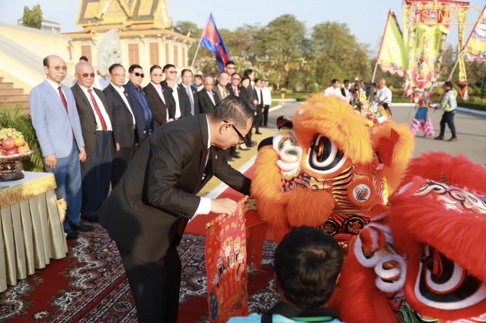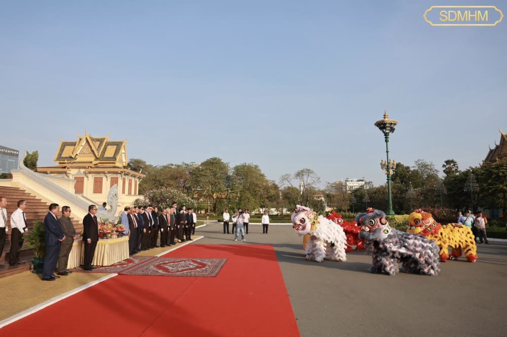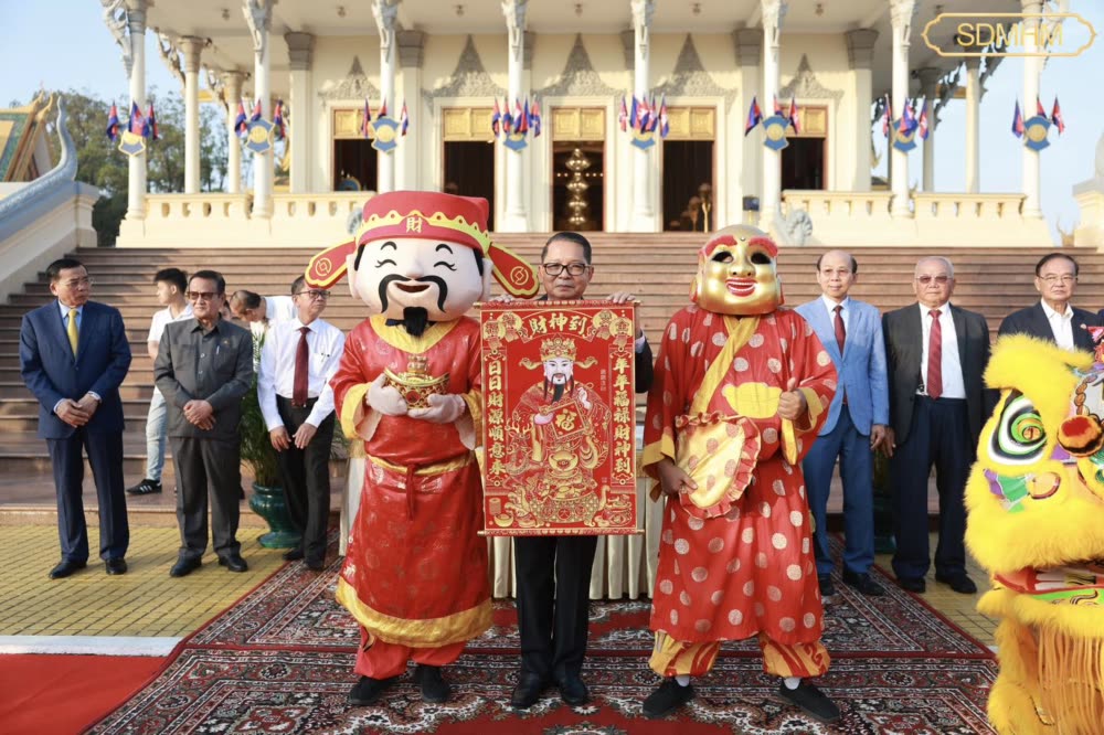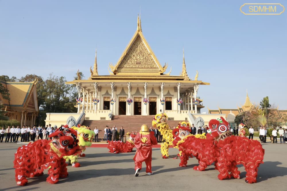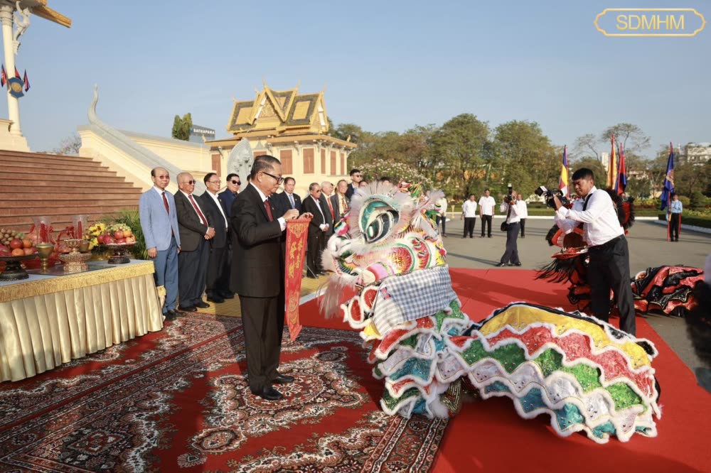 សម្តេចមហាមន្ត្រី គុយ សុផល ឧបនាយករដ្ឋមន្ត្រី និងជារដ្ឋមន្ត្រីក្រសួងព្រះបរមរាជវាំង បានរៀបចំទទួលក្រុមសិល្បៈម៉ុងសាយ និង ម៉ុងឡេង នៃសមាគមខ្មែរ-ចិន នៅព្រះរាជាណាចក្រកម្ពុជា ចូលសម្តែងថ្វាយទេវតា ថែរក្សាព្រះមហាស្វេតច្ឆត្រ ក្នុងឱកាសពិធីបុណ្យចូលឆ្នាំថ្មីប្រពៃណីចិន នៅមុខព្រះទីនាំងទេវាវិនិច្ឆ័យ ក្នុងព្រះបរមរាជវាំង នៅព្រឹកថ្ងៃទី១៦ ខែកុម្ភៈ ឆ្នាំ២០២៦។