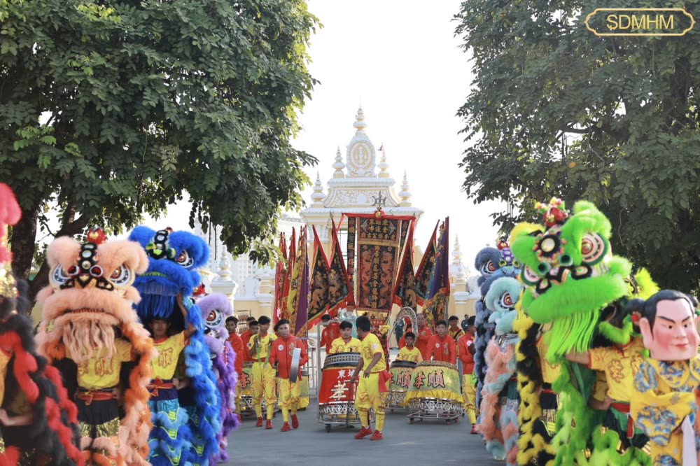 ក្រុមសិល្បៈម៉ុងសាយ និង ម៉ុងឡេង នៃសមាគមខ្មែរ-ចិនចូលសម្តែងថ្វាយទេវតា ថែរក្សាព្រះមហាស្វេតច្ឆត្រ ក្នុងឱកាសពិធីបុណ្យចូលឆ្នាំថ្មីប្រពៃណីចិន