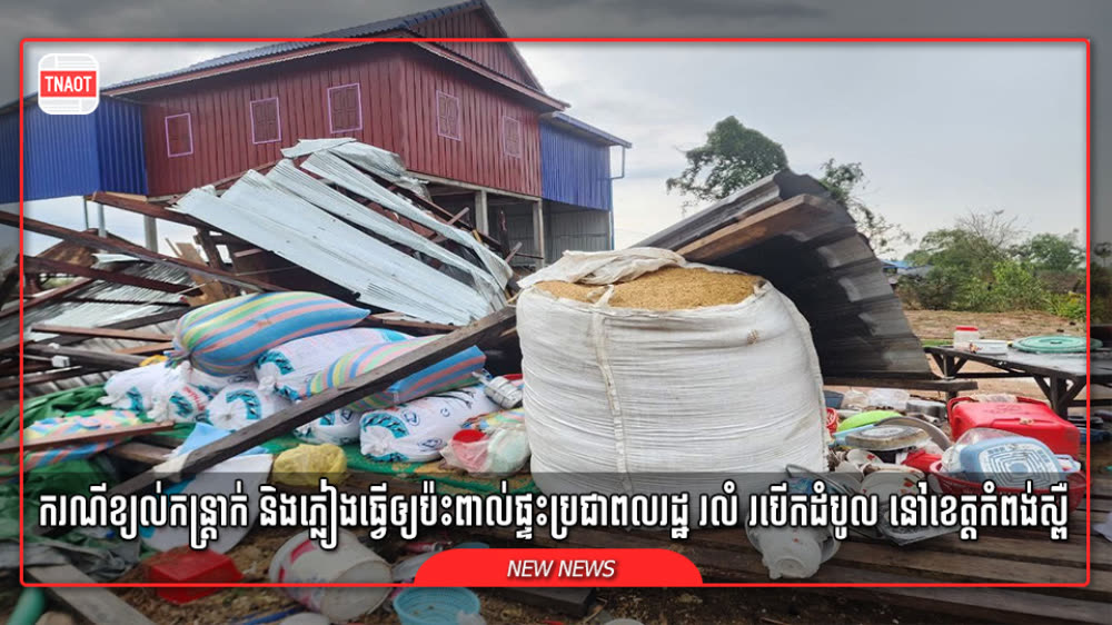 ភ្លៀងលាយខ្យល់កន្ត្រាក់ បណ្ដាលឲ្យផ្ទះប្រជាពលរដ្ឋរលំ និងរបើកដំបូល អស់ជាច្រើនខ្នង