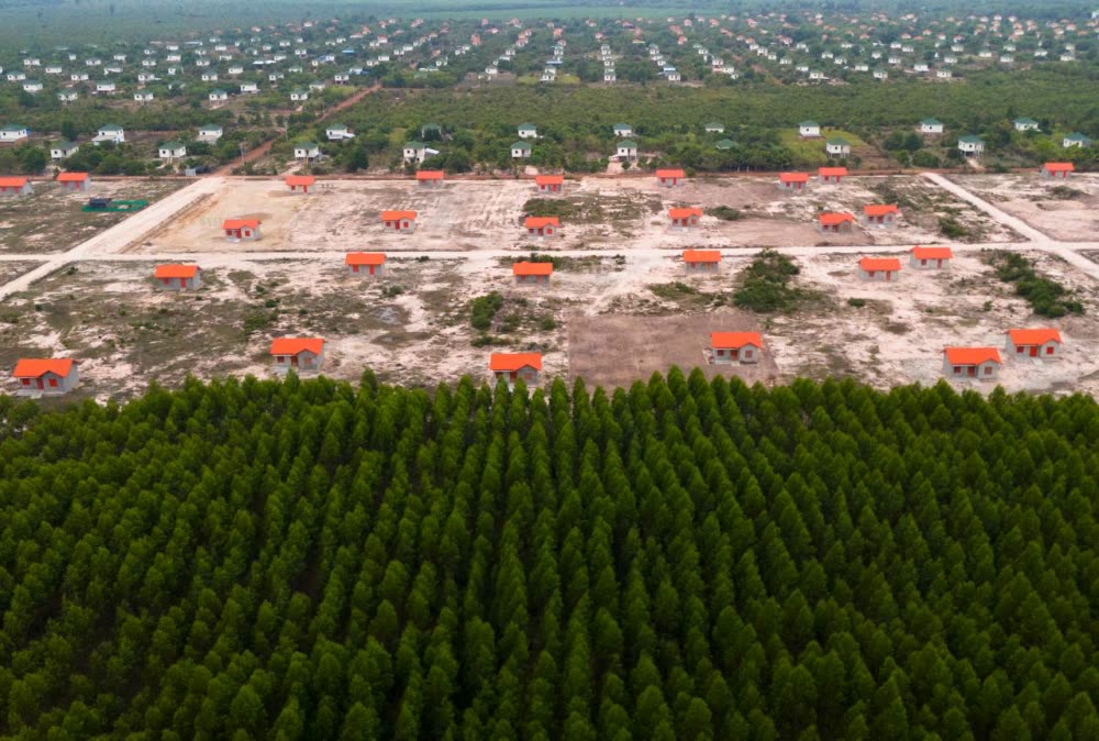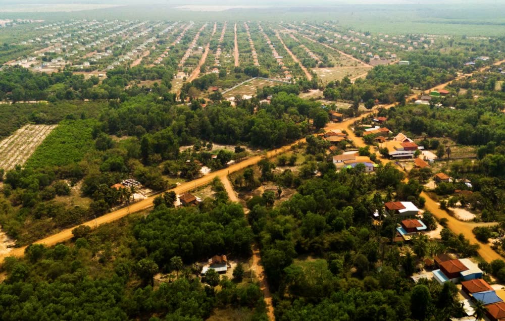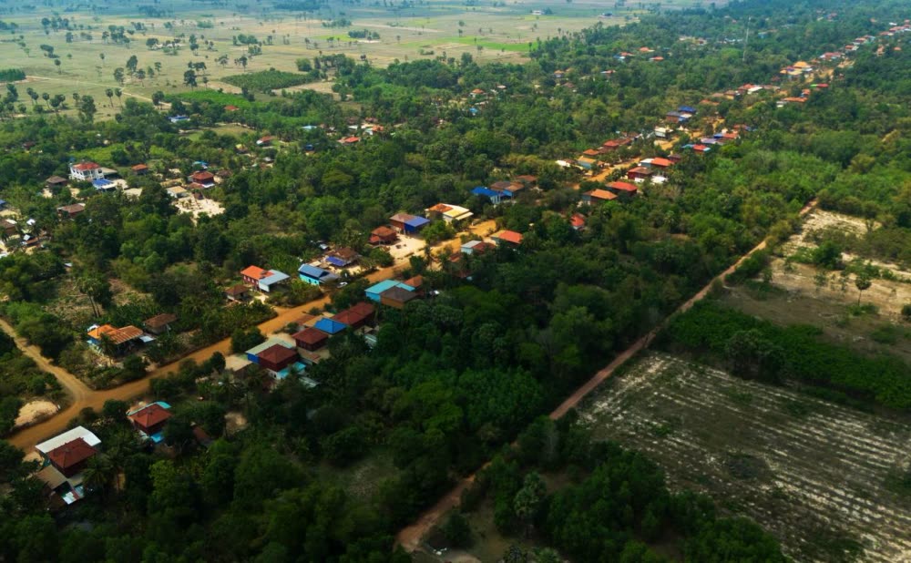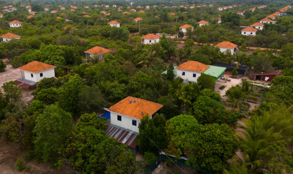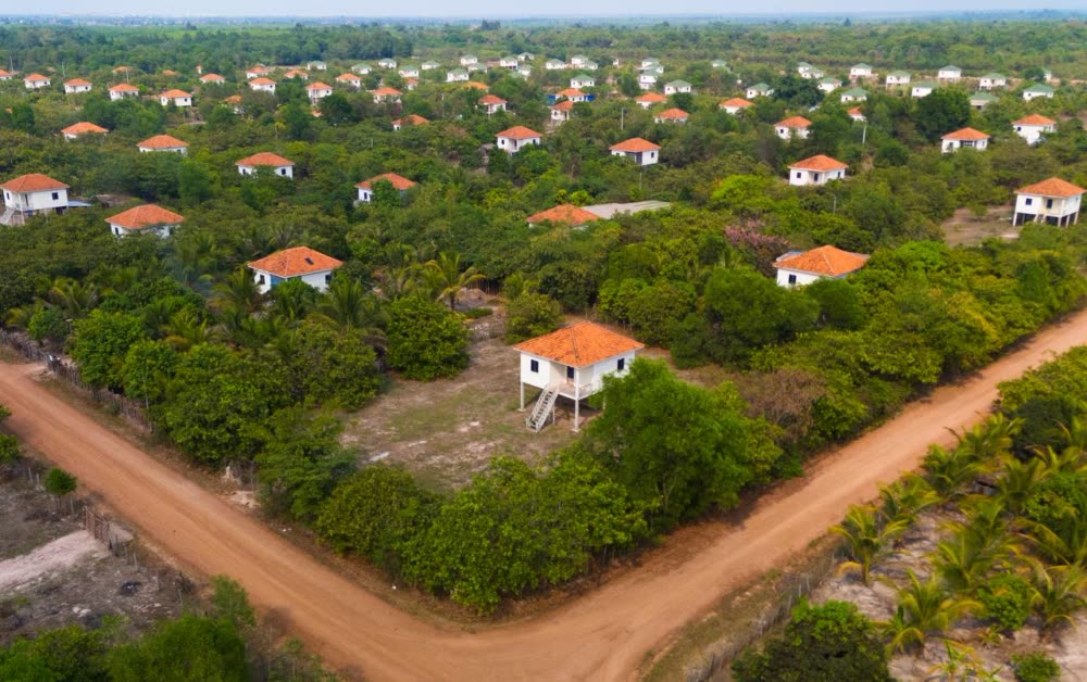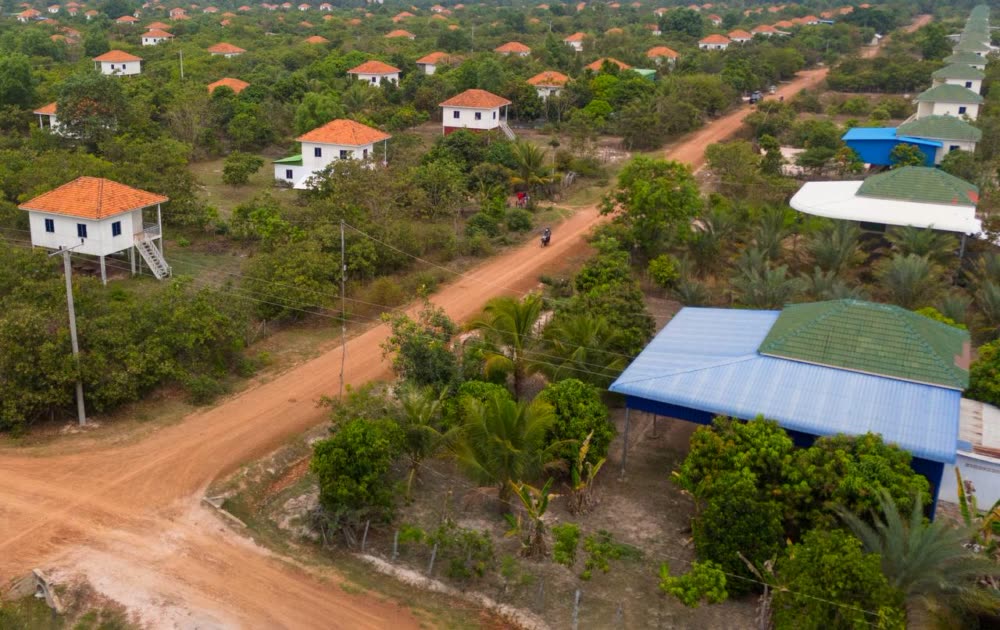 ទិដ្ឋភាពផ្ទះ និងហេដ្ឋារចនាសម្ព័ន្ធនានារបស់ភូមិអតីតយុទ្ធជន និងនិវត្តជនកម្ពុជា នៅលើដី សម្បទានសង្គមកិច្ច ស្ថិតនៅខេត្តស្វាយរៀង
