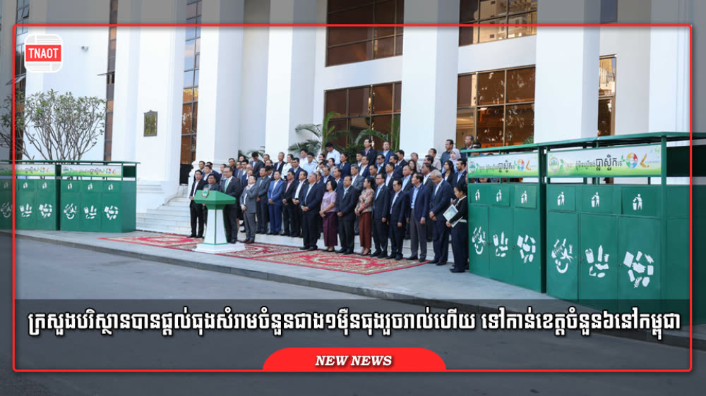 ក្រសួងបរិស្ថាននៅថ្ងៃទី១០ ខែមីនា ឆ្នាំ២០២៦ ទទួលធុងញែកសំរាម សរុបចំនួន១០០ឈុត ដោយមួយឈុត មាន៣ធុង របស់ក្រុមហ៊ុន Leader Energy Group Berhad ដែលមានក្រុមហ៊ុន Cambodian Transmission Limited ជាបុត្រសម្ព័ន្ធ សម្រាប់ចែកជូនបន្តដល់រដ្ឋបាលក្រុង-ស្រុក នៃខេត្តត្បូងឃ្មុំ និងខេត្តកំពង់ធំ ដើម្បីដាក់នៅតាមសាលារៀន វត្តអារាម មណ្ឌលសុខភាព និងតាមផ្សារ។