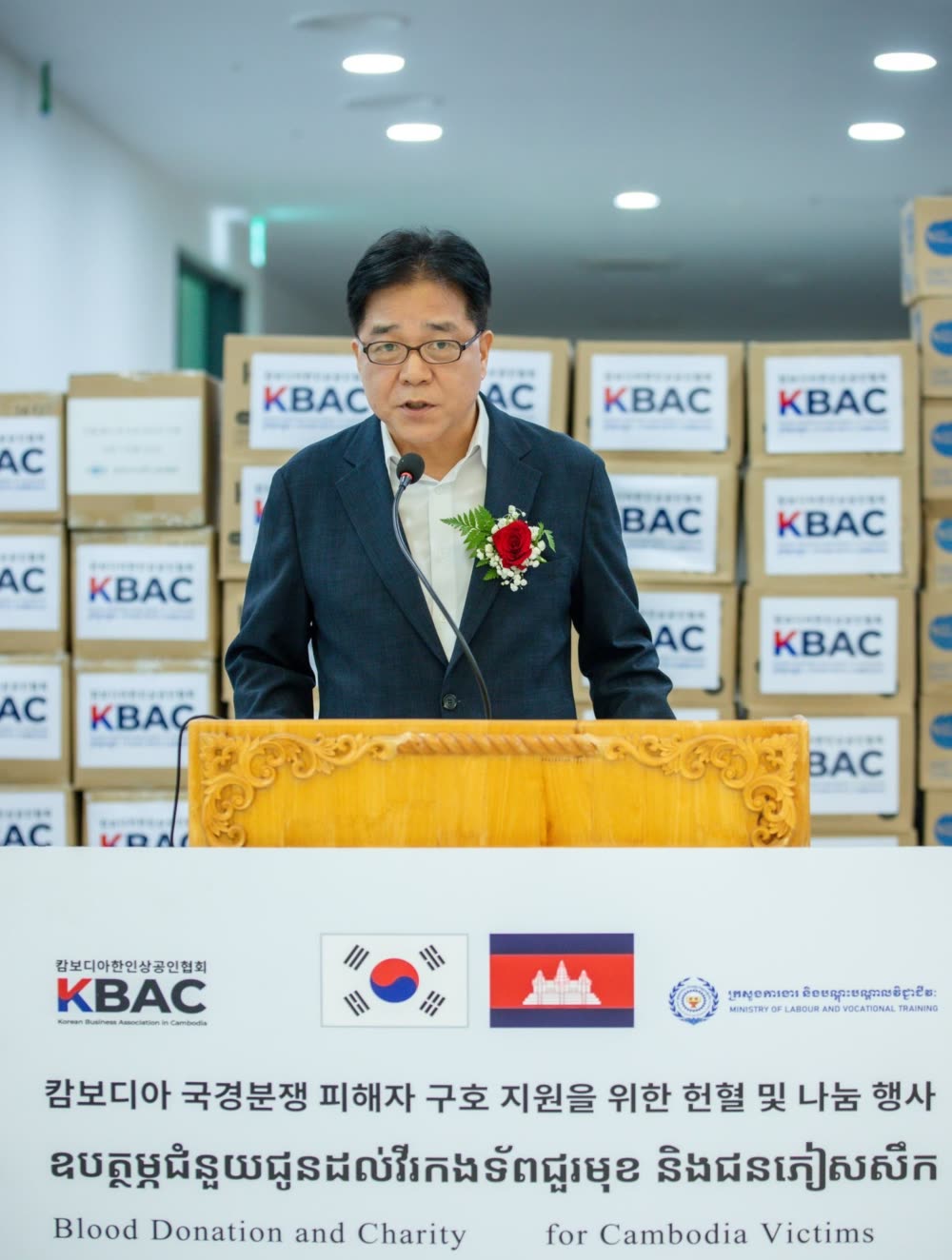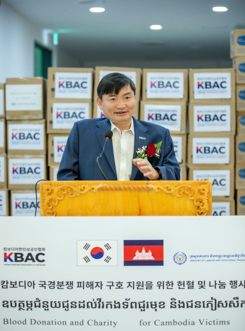 នាព្រឹកថ្ងៃទី១១ ខែមីនា ឆ្នាំ២០២៦ ឯកឧត្តម ហេង សួរ រដ្ឋមន្រ្តីក្រសួងការងារ និងបណ្តុះបណ្តាលវិជ្ជាជីវៈ បានអញ្ជើញជាអធិបតីដ៏ខ្ពង់ខ្ពស់ក្នុង ”ព្រឹត្តិការណ៍សប្បុរសធម៌សម្រាប់ជួយដល់ជនរងគ្រោះកម្ពុជានៅតាមព្រំដែន” របស់សមាគមធុរកិច្ចកូរ៉េនៅកម្ពុជា (KBAC) នៅអគារ ប៊ូយុងថោន សម្រាប់ផ្តល់ជាអំណោយជូនដល់បងប្អូនជនភៀសសឹក និងវីរកងទ័ពជួរមុខ ដោយមានការអញ្ជើញចូលរួមពី ថ្នាក់ដឹកនាំក្រសួង សមាជិកសមាគមធុរកិច្ចកូរ៉េនៅកម្ពុជា ពលករខ្មែរ និងប្រជាពលរដ្ឋជាច្រើនរូប។
