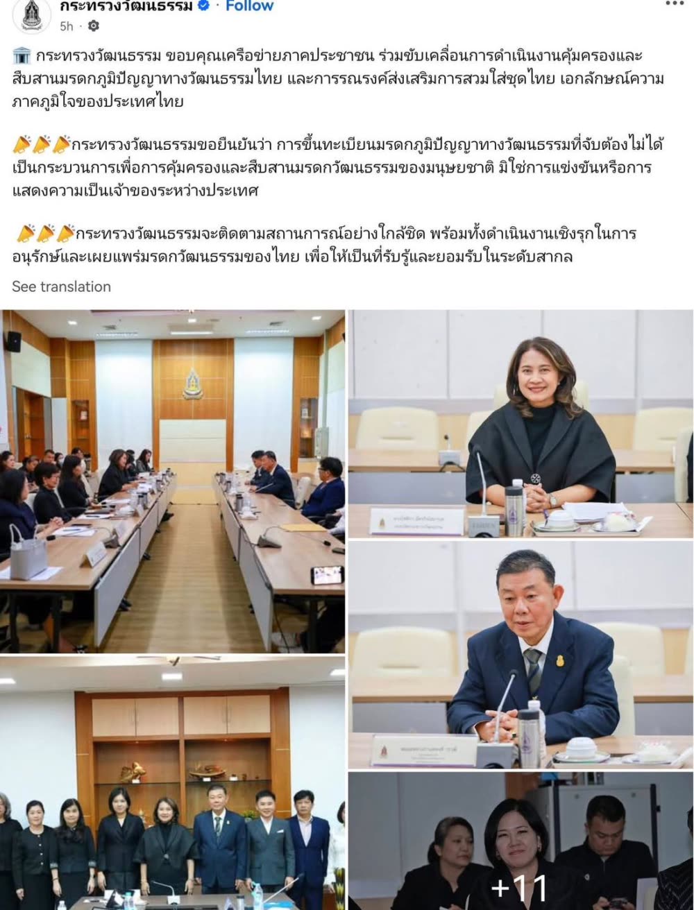 ក្រសួងវប្បធម៌ និងវិចិត្រសិល្បៈនៃព្រះរាជាណាចក្រកម្ពុជា បានកត់សម្គាល់អំពីព័ត៌មាន និងមតិយោបល់មួយចំនួន ដែលកំពុងផ្សព្វផ្សាយលើបណ្តាញសង្គមរបស់ប្រទេសថៃ និងសេចក្តីថ្លែងការណ៍របស់អ្នកនយោបាយថៃមួយចំនួន ពាក់ព័ន្ធ នឹងសម្លៀកបំពាក់ប្រពៃណី និងការជំទាស់ចំពោះការផ្សព្វផ្សាយបង្ហាញវប្បធម៌ខ្មែរ។
