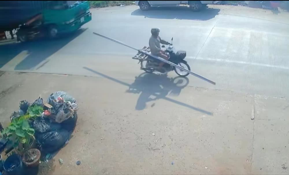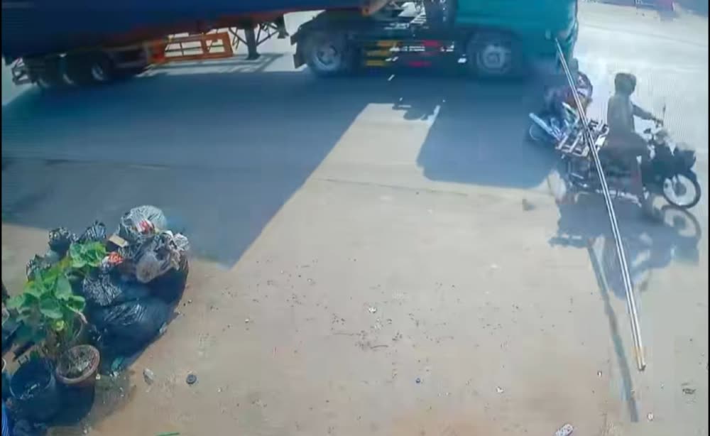 បុរសម្នាក់បើកម៉ូតូមួយគ្រឿងដឹកដែកវែង ក៏បើកទាក់ត្រូវម៉ូតូមួយគ្រឿងទៀត បណ្តាលឲ្យជនរងគ្រោះខ្ទាតចូលក្រោមឡានកុងតឺន័រ កិនស្លាប់ភ្លាមៗ