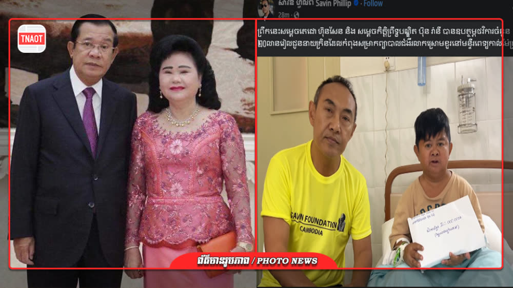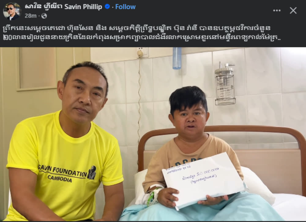 សម្ដេចតេជោ ហ៊ុនសែន និង សម្ដេចកិត្តិព្រឹទ្ធបណ្ឌិត ប៊ុន រ៉ានី បានឧបត្ថម្ភថវិកាចំនួន ២០លានរៀល ជូននាយក្រិនដែលកំពុងសម្រាកព្យាបាលជំងឺរលាកស្រោមខួរនៅមន្ទីរពេទ្យកាល់ម៉ែត្រ