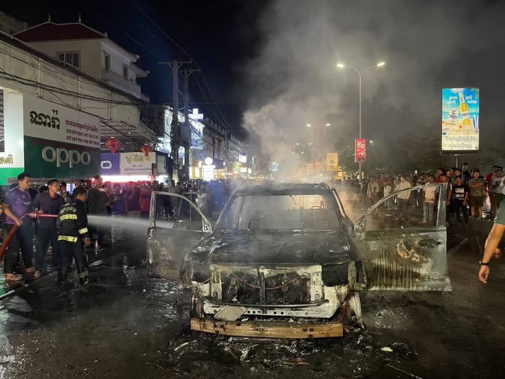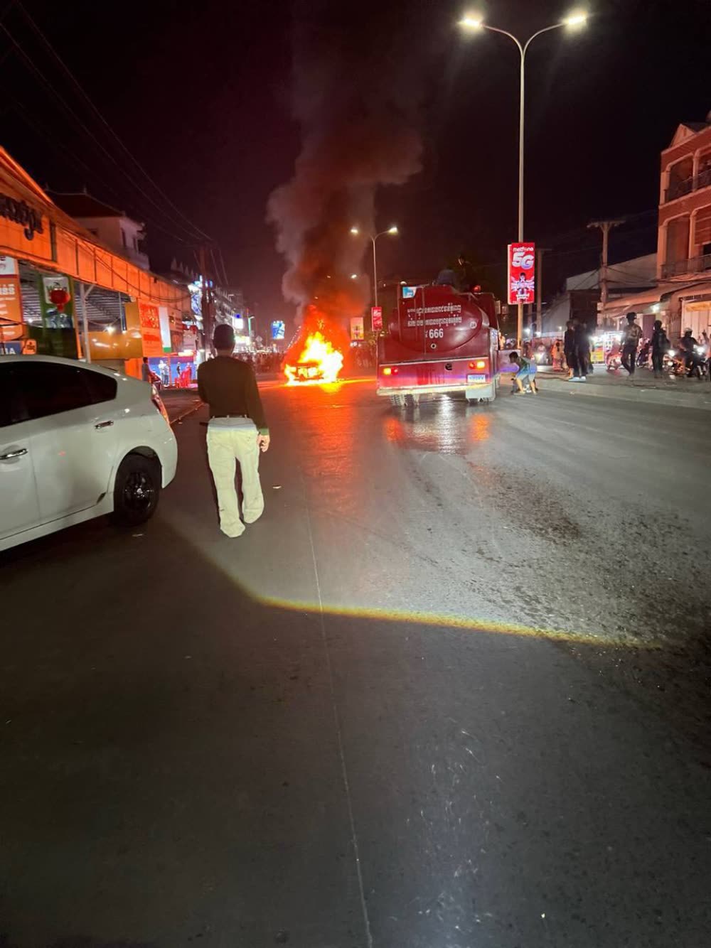 ឆ្លងប្រព័ន្ធភ្លេីងបង្ករជាអគ្គិភ័យឆាបឆេះរថយន្ត ១គ្រឿង ខូចខាតអស់ទាំងស្រុង នៅខណ្ឌមានជ័យ