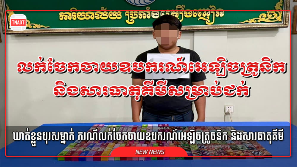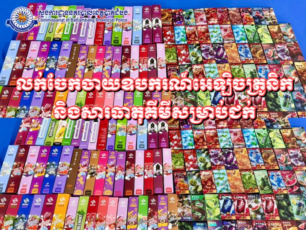 សមត្ថកិច្ចឃាត់ខ្លួនបុរសម្នាក់ ពាក់ព័ន្ធករណីលក់ចែកចាយឧបករណ៍អេឡិចត្រូនិច និងសារធាតុគីមីសម្រាប់ជក់ នៅក្រុងបាត់ដំបង