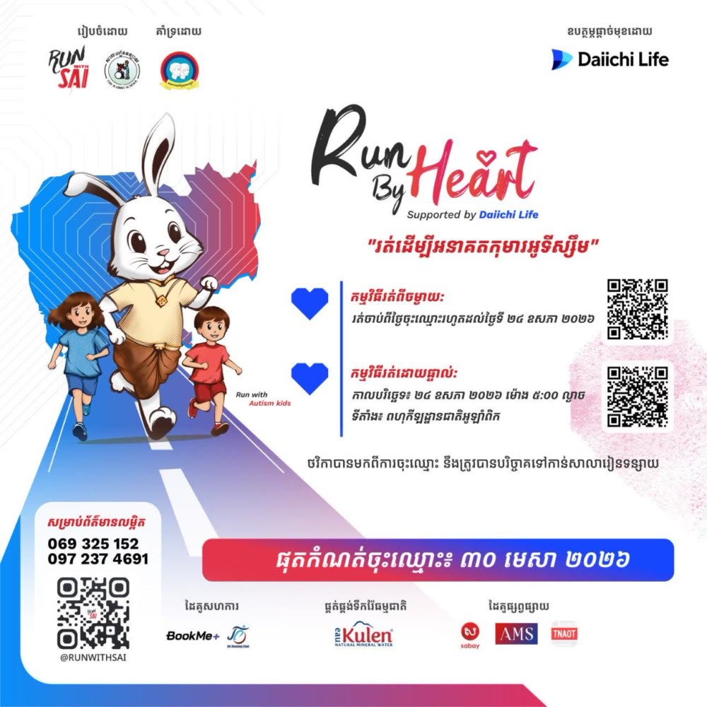 ព្រឹត្តិការណ៍ “រត់ដោយបេះដូង លើកទី៣ ឆ្នាំ២០២៦" "RUN BY HEART 2026, 3RD EDITION" គឺជាព្រឹត្តិការណ៍ រៀបចំ រួមគ្នាដោយក្រុមការងារ RUN WITH SAI និង អង្គការសាលារៀនទន្សាយ គាំទ្រដោយ សហភាពសហព័ន្ធយុវជនកម្ពុជា ឧបត្ថម្ភផ្តាច់មុខដោយ ក្រុមហ៊ុនធានារ៉ាប់រង ដោយ អ៊ិឈិ ឡាយហ៍ (DAIICHI LIFE CAMBODIA) ជាក្រុមហ៊ុនធានារ៉ាប់រងអាយុជីវិតឈានមុខគេមួយរបស់ប្រទេសជប៉ុនដែលមានបទពិសោធន៍ជាង ១២២ឆ្នាំ ក្នុងការការពារហិរញ្ញវត្ថុជូនអតិថិជន។ ថវិកាទាំងអស់ទទួលបានពីការចុះឈ្មោះចូលរួមរត់ នឹងបរិច្ចាគទៅកាន់ អង្គការសាលារៀនទន្សាយ ដែលជាសាលារៀនមួយ ទទួលការថែទាំ និងបង្ហាត់បង្រៀន ទៅដល់កុមារអូទីសៀម (AUTISM) មានទីតាំងនៅរាជធានីភ្នំពេញ។